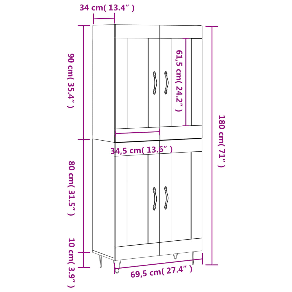 Highboard Grau Sonoma 69,5x34x180 cm Holzwerkstoff