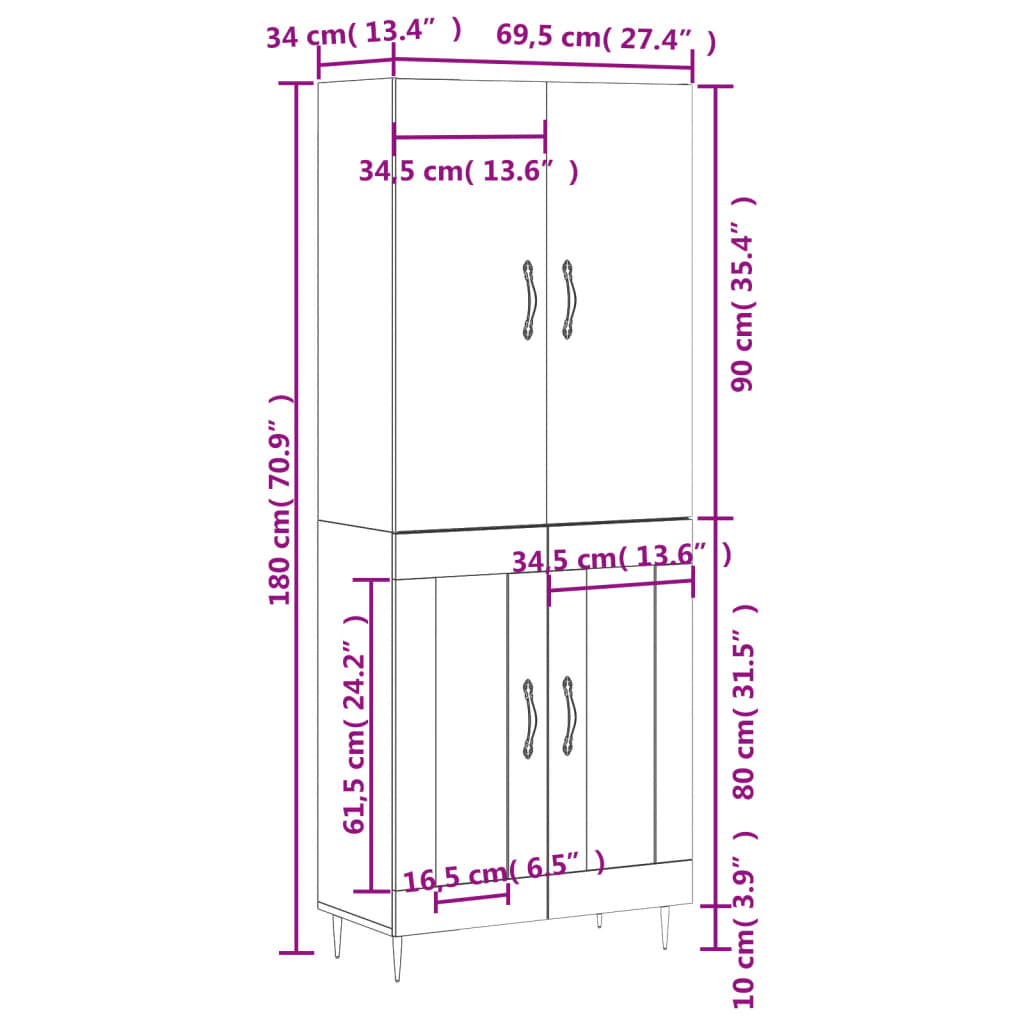 - Abmessungen des Highboard-Aufsatzes: 69,5 x 34 x 90 cm (B x T x H)