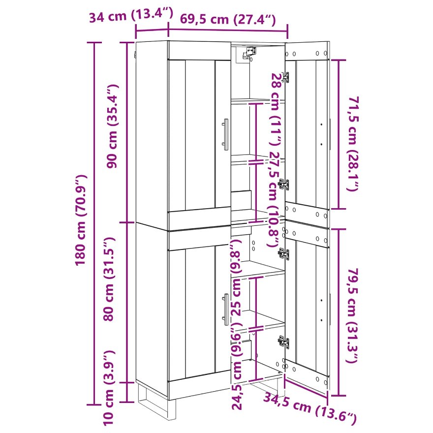 Highboard Schwarz Eichen-Optik 69,5 x 34 x 180 cm Holzwerkstoff