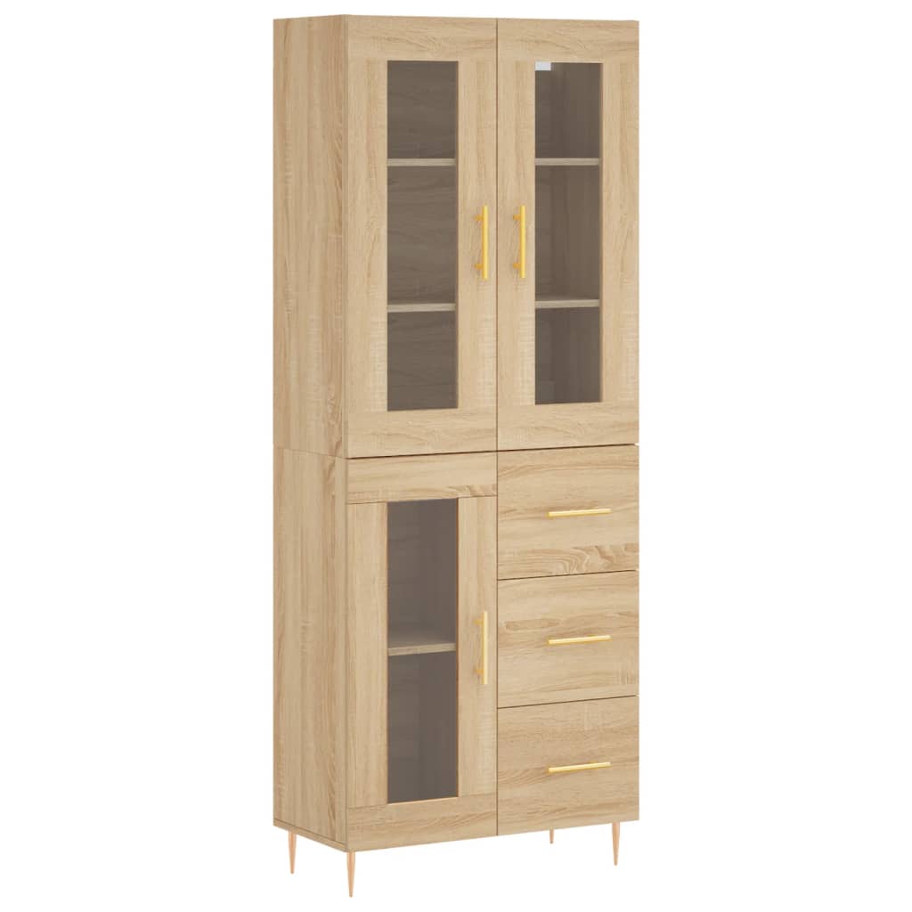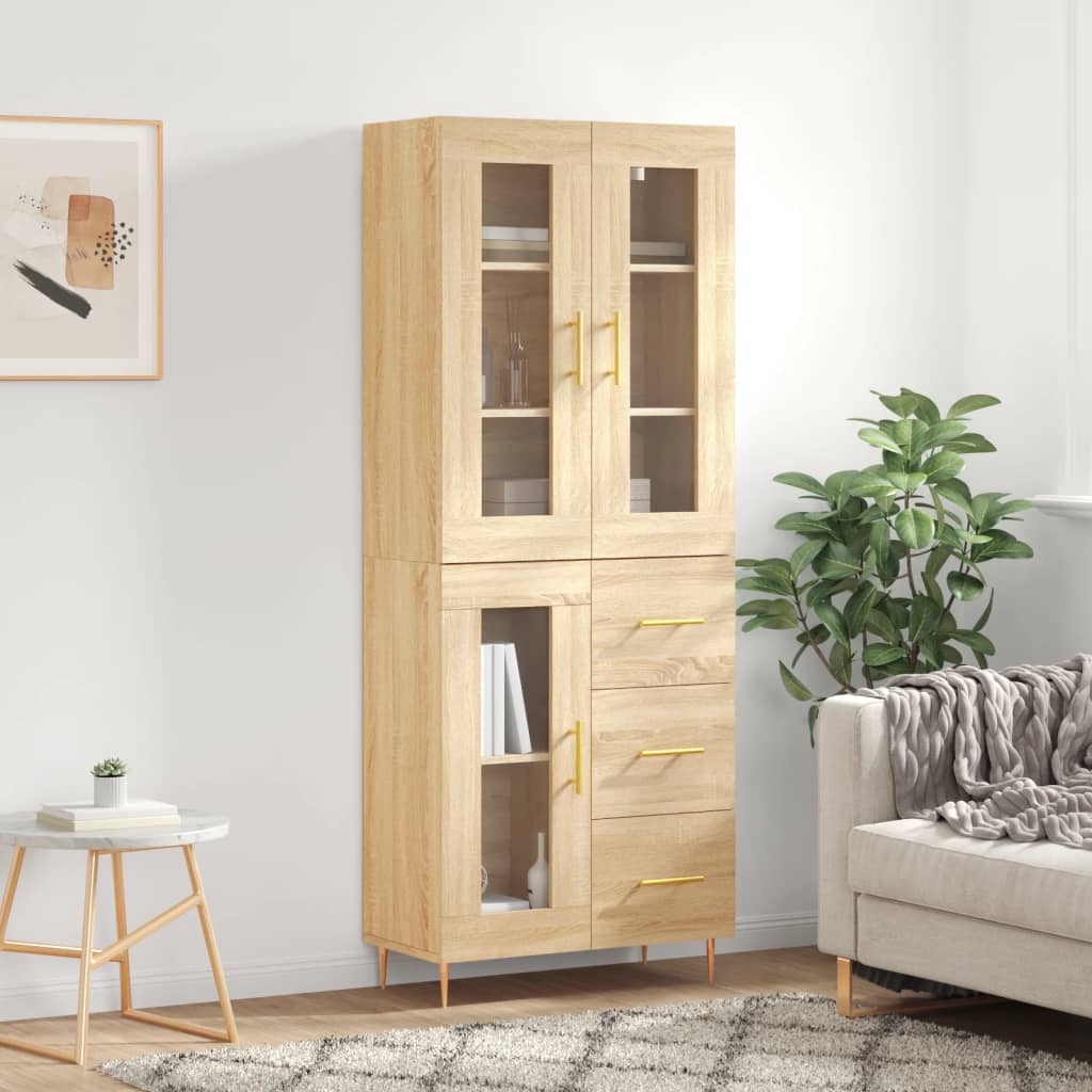 Auf der Suche nach einem stilvollen Highboard? Dieser Schrank verleiht deiner Einrichtung einen eleganten Charme! Langlebiges Material: Holzwerkstoff ist ein Material von außergewöhnlicher Qualität mit glatter Oberfläche, das sich durch Festigkeit, Stabilität und Feuchtigkeitsbeständigkeit auszeichnet.Viel Stauraum: Der Schrank bietet viel Stauraum, um verschiedene Alltagssachen gut organisiert und griffbereit aufzubewahren.Praktische Tür: Sorge für Ordnung in deinem Wohnzimmer, indem du wichtige Kleinigkeiten in diesem Schrank hinter der Tür versteckst.Metallfüße: Die Metallfüße verleihen ihm eine angenehme Optik und sorgen gleichzeitig für Stabilität. Achtung:Um ein Umkippen zu vermeiden, sollte dieses Produkt mit der mitgelieferten Wandhalterung gesichert werden. Gut zu wissen:Schrauben und Dübel sind für die Befestigung an der Wand nicht im Lieferumfang enthalten. Wir empfehlen, speziell für deine Wände geeignete Schrauben und Dübel zu finden und zu verwenden. Im Zweifelsfall wende dich an einen Fachmann. Bitte lese und befolge jeden Schritt der Anweisungen.