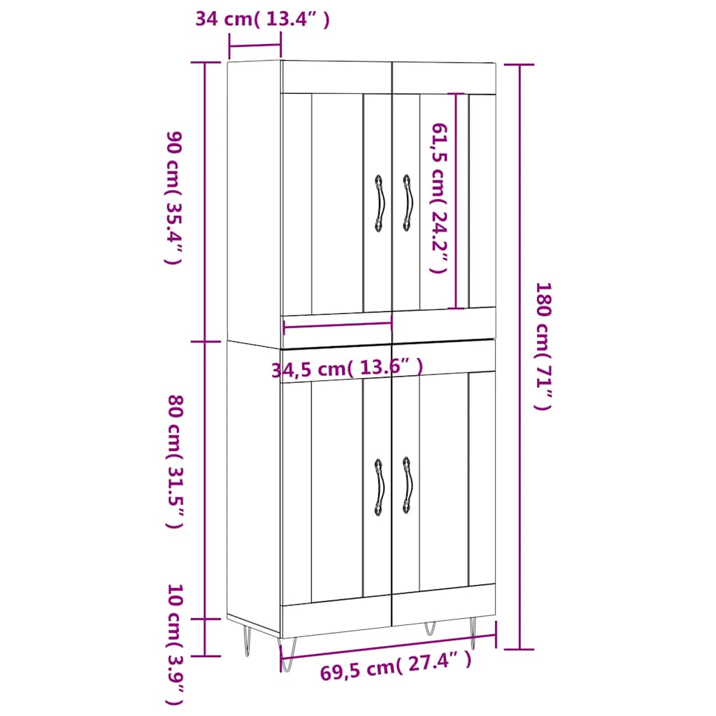 - Abmessungen des Highboard-Aufsatzes: 69,5 x 34 x 90 cm (B x T x H)
