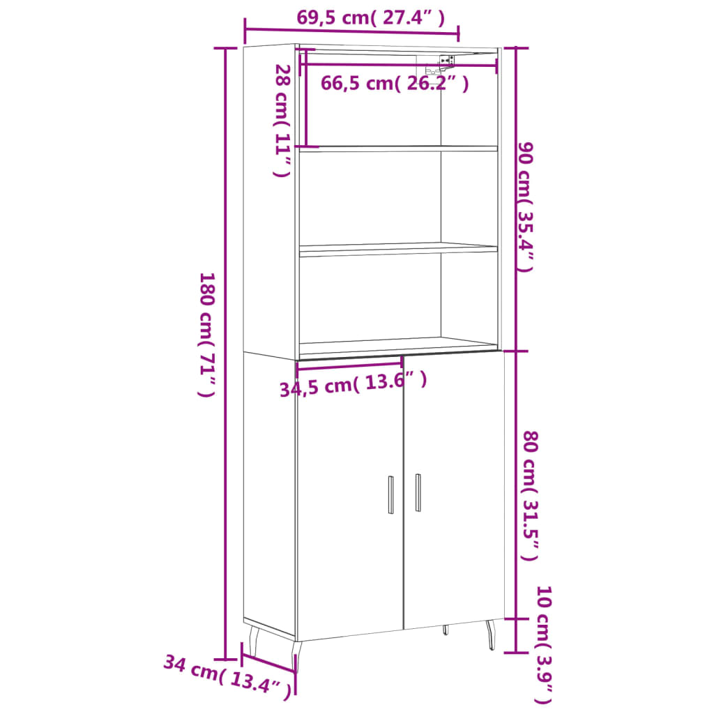 Highboard Sonoma-Eiche 69,5x34x180 cm Holzwerkstoff