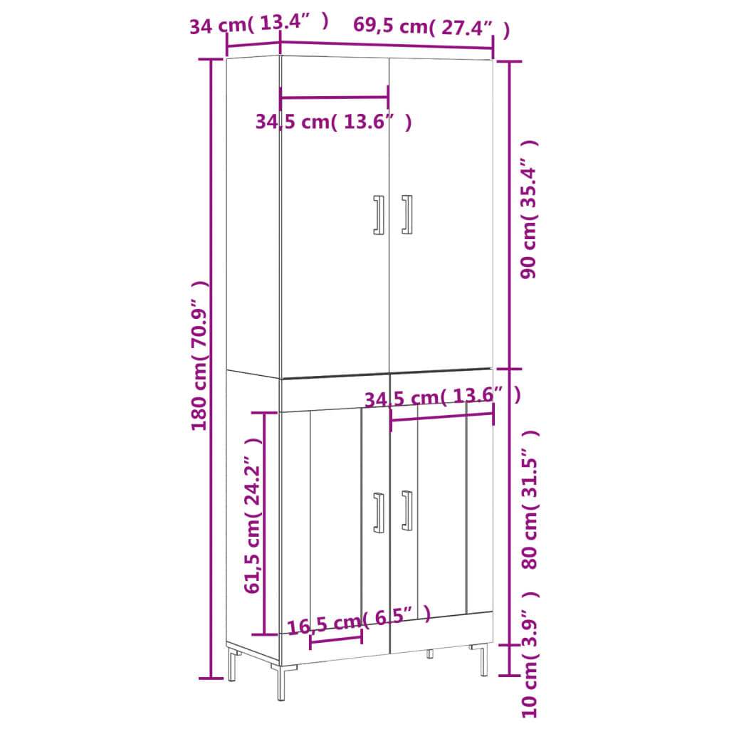 Highboard Sonoma-Eiche 69,5x34x180 cm Holzwerkstoff