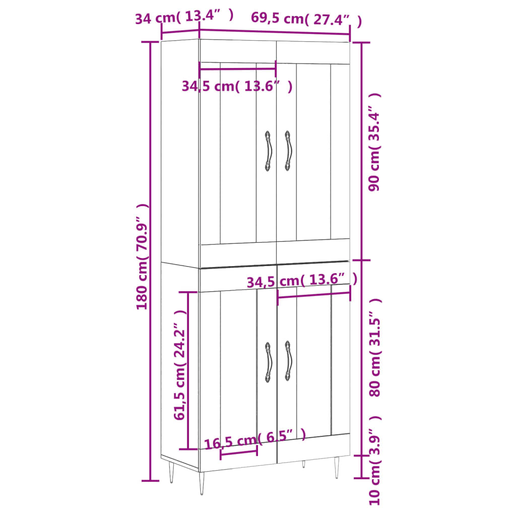 - Abmessungen des Highboard-Aufsatzes: 69,5 x 34 x 90 cm (B x T x H)