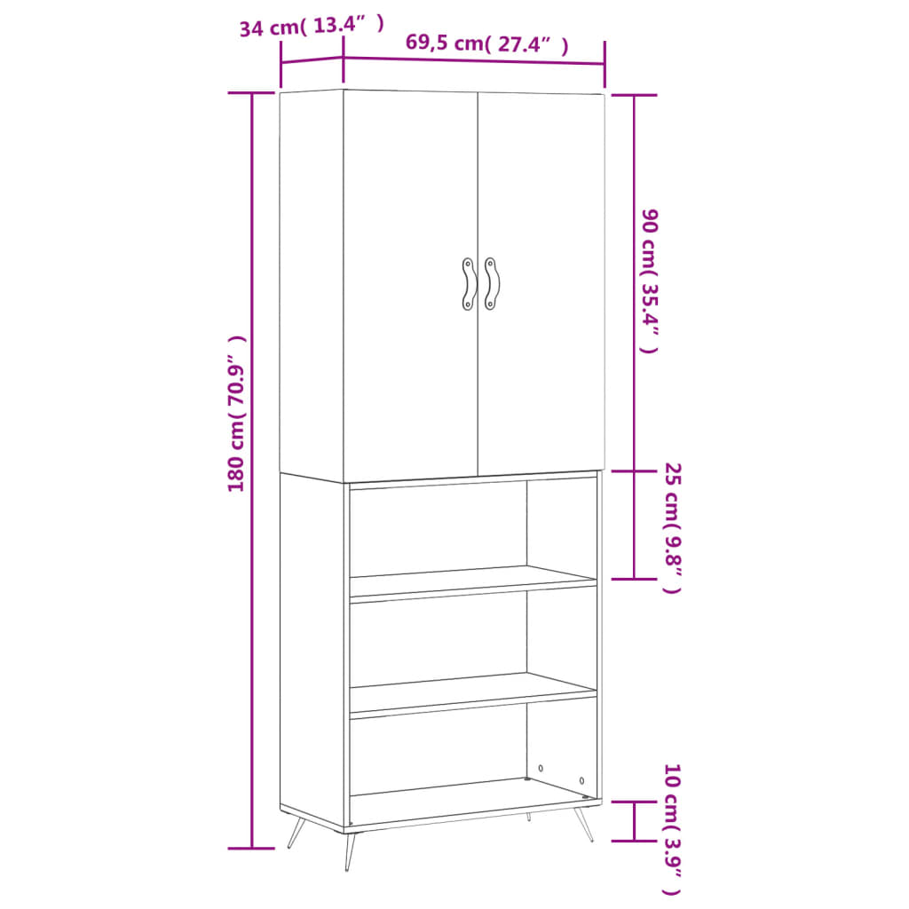 - Abmessungen des Highboard-Aufsatzes: 69,5 x 34 x 90 cm (B x T x H)