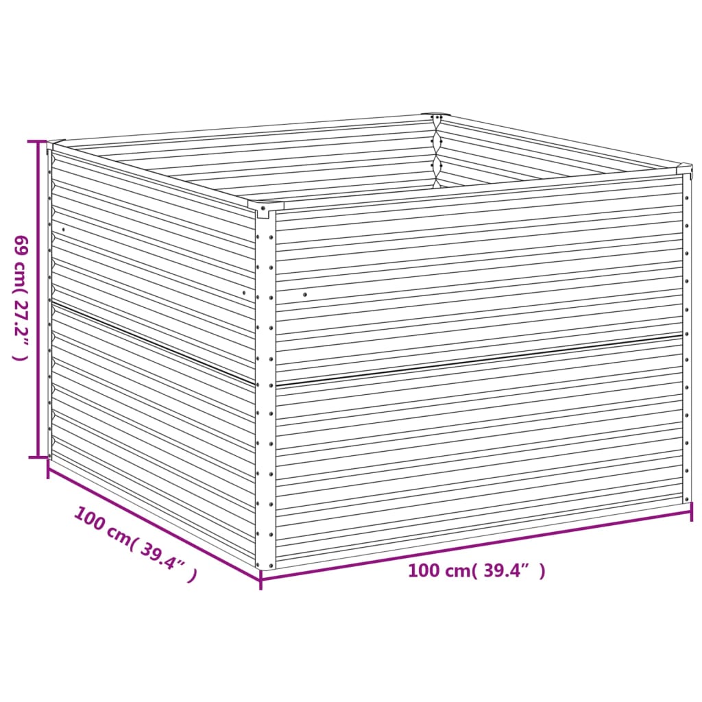 Dieses Hochbeet eignet sich hervorragend für Heimwerker, die ihre Gärten, Balkone oder Terrassen mit Pflanzen verschönern möchten. Langlebiges Material: Cortenstahl ist ein wetterfester Stahl, der von Natur aus korrosionsbeständig ist. Er bildet eine schützende Rostschicht gegen Korrosion, sobald er der Witterung ausgesetzt wird. Du brauchst ihn also nicht zu streichen. Dadurch kannst du Wartungs- und Reparaturkosten einsparen. Die markante braune Farbe des Cortenstahls ist sicherlich ein Blickfang. Schließlich ist wetterfester Stahl außerordentlich langlebig und hält dem Test der Zeit stand.Viel Platz: Das Pflanzgefäß ist tief und breit genug, um eine große Menge Erde aufzunehmen und reichlich Platz für deine Pflanzen, Gemüse, Kräuter und Blumen zu bieten.Sichere Kantenfaltung: Der Rand des Pflanzkübels ist mit einem Falz versehen, sodass er keine gefährlichen scharfen Kanten besitzt.Dekorativ: Der Blumenkasten bietet Platz für deine Lieblingspflanzen oder -blumen und stellt eine ideale Dekoration in deinem Garten dar. Gut zu wissen:Dieses Produkt ist noch nicht verrostet und weist beim Empfang eine normale Metallfarbe auf. Rost wird sich im Laufe der Zeit bilden. Du kannst den Rostprozess beschleunigen, indem du es mit Seifenwasser und Salzwasser besprühst. Um deine Kleidung fleckenfrei zu halten, vermeide den Kontakt mit der sich bildenden Rostschicht.