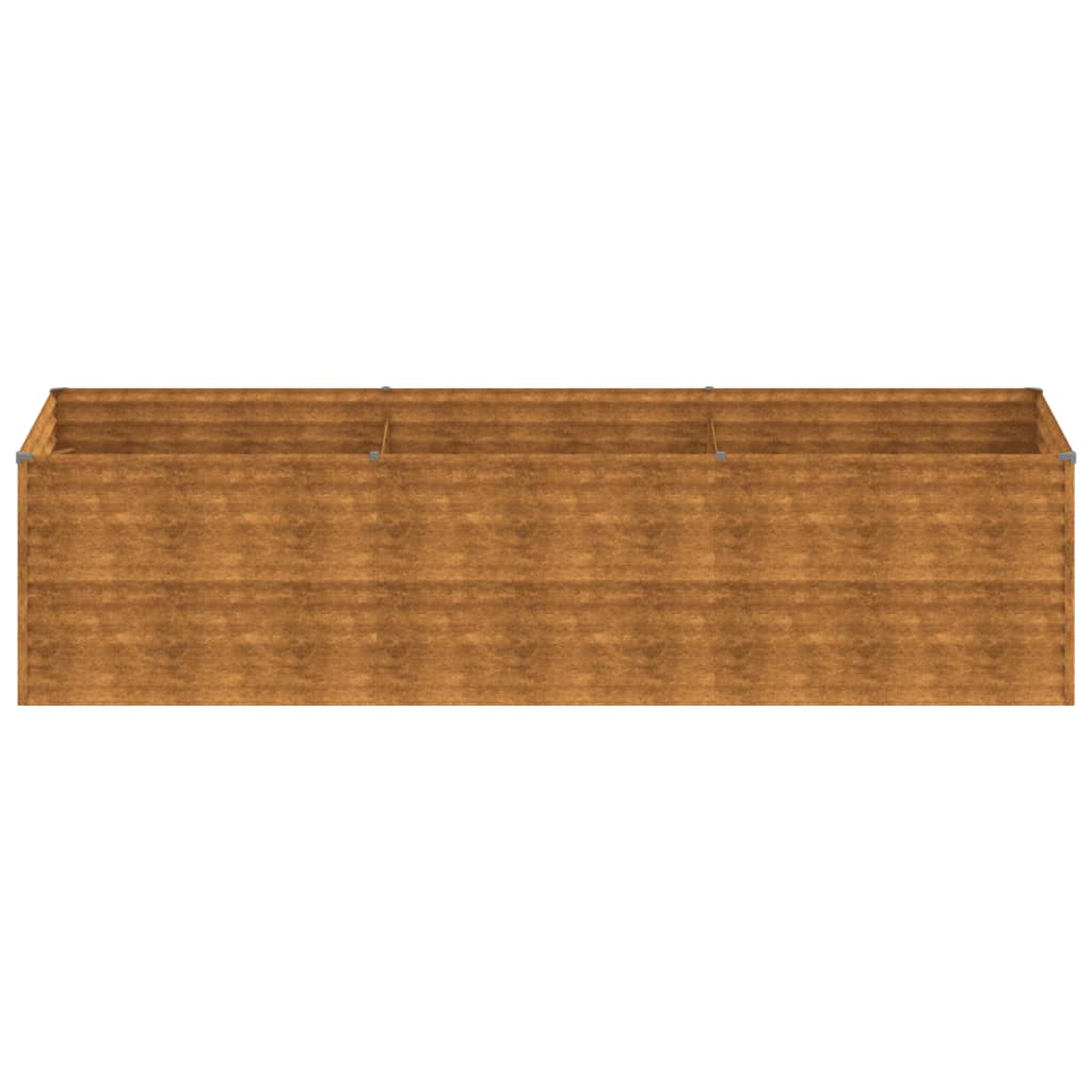 Dieses Hochbeet eignet sich hervorragend für Heimwerker, die ihre Gärten, Balkone oder Terrassen mit Pflanzen verschönern möchten. Langlebiges Material: Cortenstahl ist ein wetterfester Stahl, der von Natur aus korrosionsbeständig ist. Er bildet eine schützende Rostschicht gegen Korrosion, sobald er der Witterung ausgesetzt wird. Du brauchst ihn also nicht zu streichen. Dadurch kannst du Wartungs- und Reparaturkosten einsparen. Die markante braune Farbe des Cortenstahls ist sicherlich ein Blickfang. Schließlich ist wetterfester Stahl außerordentlich langlebig und hält dem Test der Zeit stand.Viel Platz: Das Pflanzgefäß ist tief und breit genug, um eine große Menge Erde aufzunehmen und reichlich Platz für deine Pflanzen, Gemüse, Kräuter und Blumen zu bieten.Zusätzliche Unterstützung: Die inneren Stützbügel verleihen dem Hochbeet Stabilität und Standfestigkeit.Sichere Kantenfaltung: Der Rand des Pflanzkübels ist mit einem Falz versehen, sodass er keine gefährlichen scharfen Kanten besitzt.Dekorativ: Der Blumenkasten bietet Platz für deine Lieblingspflanzen oder -blumen und stellt eine ideale Dekoration in deinem Garten dar. Gut zu wissen:Dieses Produkt ist noch nicht verrostet und weist beim Empfang eine normale Metallfarbe auf. Rost wird sich im Laufe der Zeit bilden. Du kannst den Rostprozess beschleunigen, indem du es mit Seifenwasser und Salzwasser besprühst. Um deine Kleidung fleckenfrei zu halten, vermeide den Kontakt mit der sich bildenden Rostschicht.