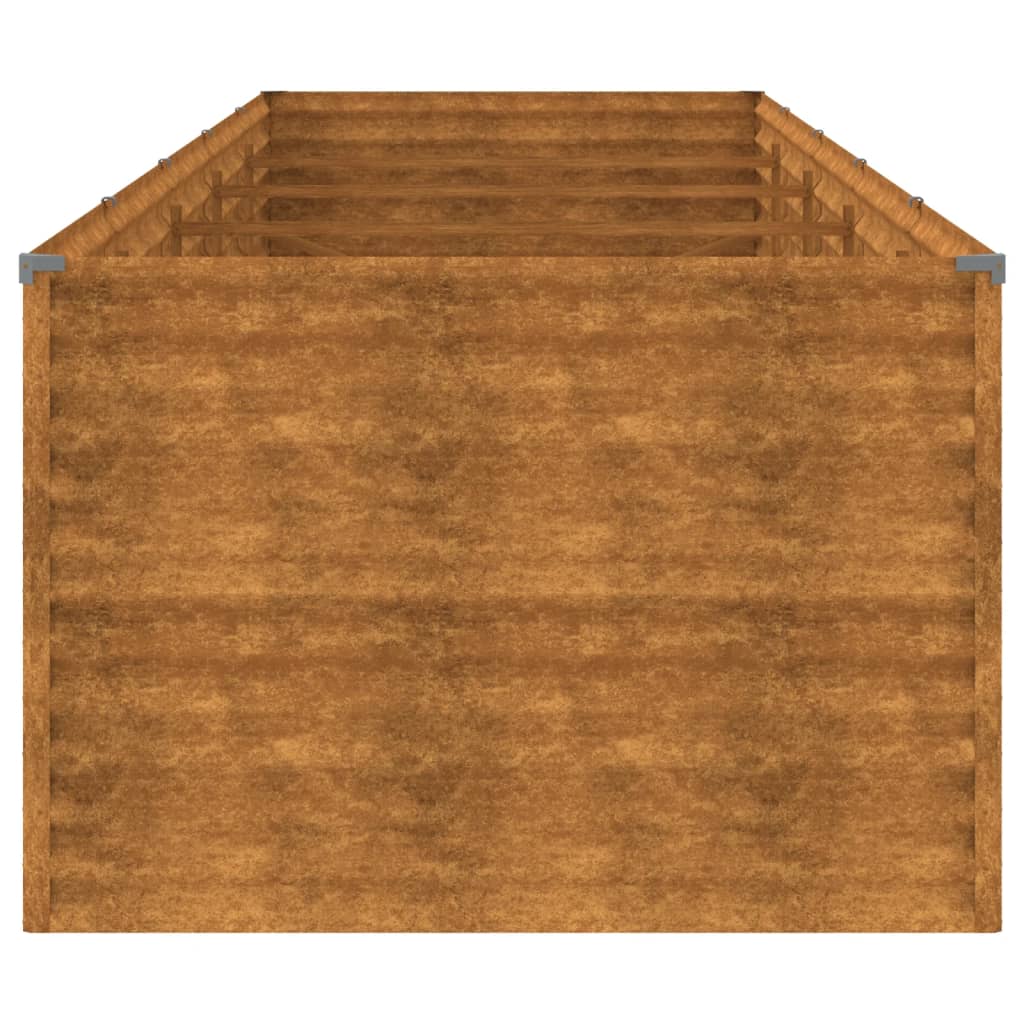 Dieses Hochbeet eignet sich hervorragend für Heimwerker, die ihre Gärten, Balkone oder Terrassen mit Pflanzen verschönern möchten. Langlebiges Material: Cortenstahl ist ein wetterfester Stahl, der von Natur aus korrosionsbeständig ist. Er bildet eine schützende Rostschicht gegen Korrosion, sobald er der Witterung ausgesetzt wird. Du brauchst ihn also nicht zu streichen. Dadurch kannst du Wartungs- und Reparaturkosten einsparen. Die markante braune Farbe des Cortenstahls ist sicherlich ein Blickfang. Schließlich ist wetterfester Stahl außerordentlich langlebig und hält dem Test der Zeit stand.Viel Platz: Das Pflanzgefäß ist tief und breit genug, um eine große Menge Erde aufzunehmen und reichlich Platz für deine Pflanzen, Gemüse, Kräuter und Blumen zu bieten.Zusätzliche Unterstützung: Die inneren Stützbügel verleihen dem Hochbeet Stabilität und Standfestigkeit.Sichere Kantenfaltung: Der Rand des Pflanzkübels ist mit einem Falz versehen, sodass er keine gefährlichen scharfen Kanten besitzt.Dekorativ: Der Blumenkasten bietet Platz für deine Lieblingspflanzen oder -blumen und stellt eine ideale Dekoration in deinem Garten dar. Gut zu wissen:Dieses Produkt ist noch nicht verrostet und weist beim Empfang eine normale Metallfarbe auf. Rost wird sich im Laufe der Zeit bilden. Du kannst den Rostprozess beschleunigen, indem du es mit Seifenwasser und Salzwasser besprühst. Um deine Kleidung fleckenfrei zu halten, vermeide den Kontakt mit der sich bildenden Rostschicht.