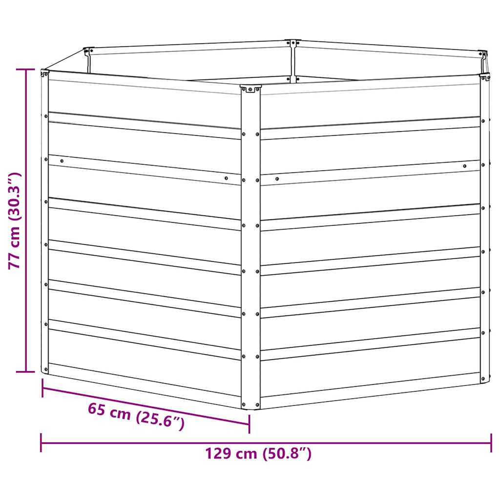 Dieses sechseckige Hochbeet aus verzinktem Stahl hat einen industriellen Look – ideal für urbane und moderne Außenbereiche. Es sorgt für die besten Wachstumsbedingungen und das offene Design fördert gesunde Wurzeln und gute Drainage. Egal ob erfahrene Gärtner:innen oder Anfänger:innen, alle kommen hier auf ihre Kosten. Mit genügend Platz für deine Lieblingsblumen oder selbstgezogene Gemüse verwandelst du deinen Garten in eine blühende Oase. Wetterfest: Für die Naturfreund:innen gemacht, trotzt dieses Hochbeet den Elementen mit seinen wetterfesten Eigenschaften. Ob Regen, Sonne oder Schnee, die Struktur bleibt unversehrt und bietet eine starke Grundlage für deine Pflanzen. So kannst du mit gutem Gewissen gärtnern. Verzinkter Stahl: Hergestellt aus robustem verzinkten Stahl, behält dieser Pflanzer seine Form und hält lange. Das schicke, industrielle Finish schützt nicht nur, sondern sieht auch gut aus. Dieser strapazierfähige Materialmix benötigt weniger Pflege und macht das Gärtnern noch angenehmer. Offenes Bodendesign: Mit einem offenen Boden ausgestattet, sorgt dieses Hochbeet für die beste Drainage und fördert das Wurzelwachstum, wie in der Natur. So bleiben deine Pflanzen gesund, weil zu viel Feuchtigkeit verhindert wird und ein gutes Umfeld für ihre Wurzeln geschaffen wird. Gute Planung führt hier zu großartigen Erträgen und blühenden Pflanzen. Einfache Pflege: Mit glatten Kanten ist dieses verzinkte Stahl-Hochbeet nicht nur sicher, sondern auch pflegeleicht. Regelmäßige Reinigungen sind schnell gemacht, ohne die Oberfläche zu beschädigen. Ideal für alle, die es einfach haben möchten, ohne auf Stil oder Effektivität zu verzichten. Industrie-Stil: Inspiriert von urbanen Lofts, nutzt dieses Hochbeet rohes Material und klare Linien, um deinem Garten oder deiner Terrasse ein minimalistisches, auffälliges Design zu verleihen. Funktionalität und Form bringen den modernen Gartendesign-Look auf ein neues Level, sodass dein Außenbereich immer zeitgemäß ist.