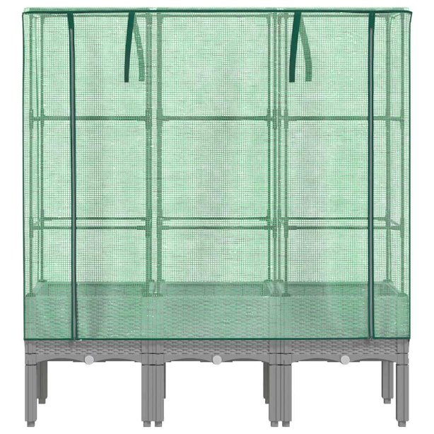 Dieses Hochbeet mit Gewächshausaufsatz bietet mit seinem stabilen Rahmen viel Platz zum Gedeihen deiner Pflanzen.Stabile Konstruktion: Das Hochbeet aus Polypropylen verfügt über einen starken Eisenrohr-Rahmen, an dem Pflanzen klettern und wachsen können.Praktischer Aufsatz: Das Hochbeet verfügt über eine wasserfeste Abdeckung aus Polyethylen, die deine Pflanzen vor extremen Temperaturen schützt und Insekten, Vögel und Kleintiere fernhält.Praktisches Design: Das Tomatenhaus verfügt über Reißverschlüsse zur Belüftung. Darüber hinaus gibt es Bänder an der Oberseite, mit denen sich das Netz leicht am Rohr befestigen lässt.Rattan-Optik: Das Hochbett im Rattan-Look verleiht deinem Außenbereich einen Hauch von natürlichem Charme.Vielseitig einsetzbar: Das Frühbeet bietet ausreichend Platz für deine Pflanzen, Gemüse, Kräuter und Blumen. Du kannst es im Garten, Innenhof, Balkon usw. verwenden.