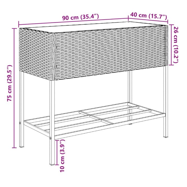 Diese Pflanzkübel sind die ideale Wahl für den Anbau einer Vielzahl von Blumen oder Pflanzen. Langlebiges Material: PE-Rattan, auch als Poly Rattan bekannt, ist ein robustes, pflegeleichtes synthetisches Material, das die Optik von natürlichem Rattan aufweist. Es kennzeichnet sich durch ein geringes Eigengewicht und lässt sich einfach reinigen. Aufgrund seiner Haltbarkeit und Witterungsbeständigkeit wird es häufig bei der Herstellung von Gartenmöbeln verwendet.Robustes und stabiles Gestell: Der pulverbeschichtete Stahlgestell ist stark, stabil, langlebig sowie korrosions- und wetterbeständig, um eine lang anhaltende Leistung zu gewährleisten.Zwei Einsatzmöglichkeiten: Du kannst den Vliesbeutel als Einlage verwenden und den Pflanzkübel mit Erde füllen oder einfach Blumentöpfe hineinstellen.Praktische Ablage: Der Pflanzkübel ist mit einer Ablage ausgestattet, die Platz zur griffbereiten Aufbewahrung von Blumenerde und Pflanzenzubehör bietet. Darüber hinaus verhindert die Ablage, dass Wasser, Gras und Schmutz vom Boden mit dem Hochbeet in Kontakt kommen, damit es sauber und optisch ansprechend bleibt.Dekorativ: Der Blumenkasten bietet Platz für deine Lieblingspflanzen oder -blumen und stellt eine ideale Dekoration in deinem Garten dar.
