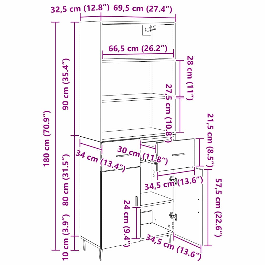 - Gesamtabmessungen: 69,5 x 34 x 180 cm (L x B x H)