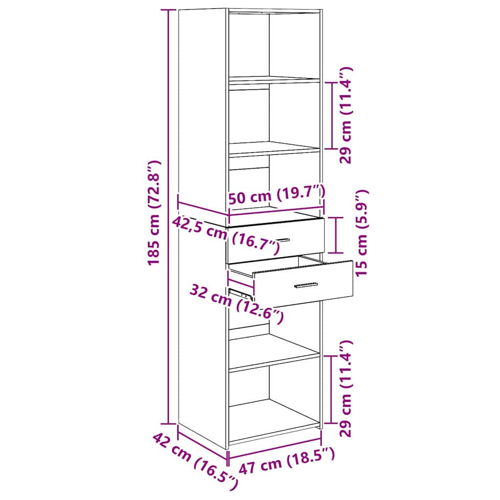 - Gesamtabmessungen: 50 x 42,5 x 185 cm (B x T x H)