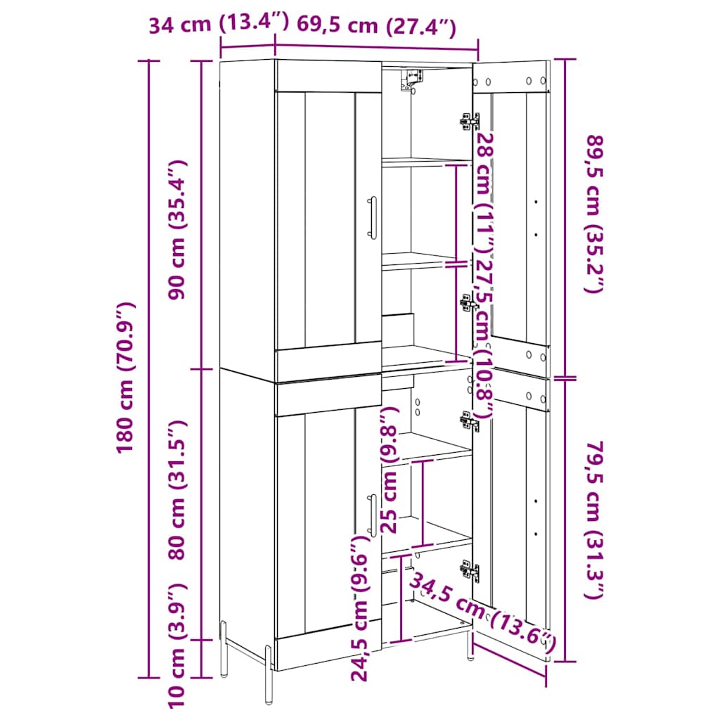 - Gesamtabmessungen: 69,5 x 34 x 180 cm (L x B x H)