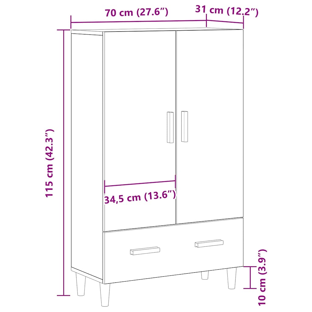 Dieses Hochboard hat ein schlankes, modernes Design und passt perfekt in zeitgenössische Innenräume. Die schicke Oberfläche in schwarzer Eiche verleiht ihm eine zeitlose Ausstrahlung, die es ideal für Esszimmer und Wohnzimmer macht. Es dient als stilvolle Stauraumlösung und ist ein tolles Zentrum deines Zuhauses. Stylisches Design: Das Hochboard hat eine matte Oberfläche, die die schwarzen Eichen-Töne betont und einen schönen Akzent in jeden Raum setzt. Viel Stauraum: Mit drei verstellbaren Regalen und zwei großzügigen Türen bietet es ausreichend Platz, damit deine Sachen ordentlich und griffbereit bleiben. Multifunktionale Verwendung: Ideal zum Servieren von Essen bei Feiern oder zum Präsentieren von Dekoration – ein praktisches Stück für jeden Raum. Haltbare Materialien: Hergestellt aus Massivholz Eiche und Holzwerkstoff, verbindet es Langlebigkeit mit elegantem Aussehen. Anpassbare Organisation: Die verstellbaren Regale ermöglichen dir, das Innenlayout nach deinen Stauraumbedürfnissen anzupassen, perfekt für Objekt unterschiedlichster Höhe.