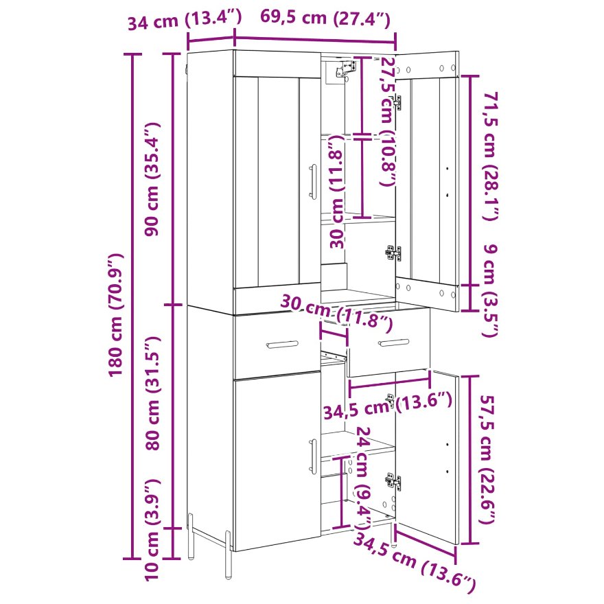 - Gesamtabmessungen: 69,5 x 34 x 180 cm (L x B x H)