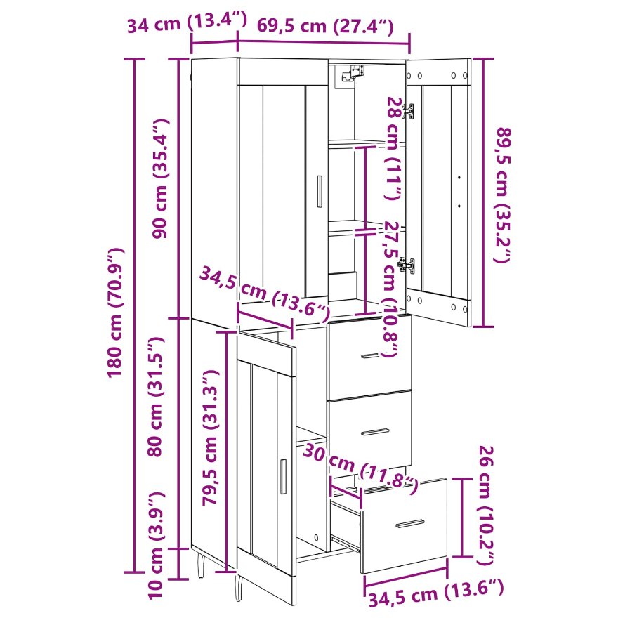 - Gesamtabmessungen: 69,5 x 34 x 180 cm (L x B x H)