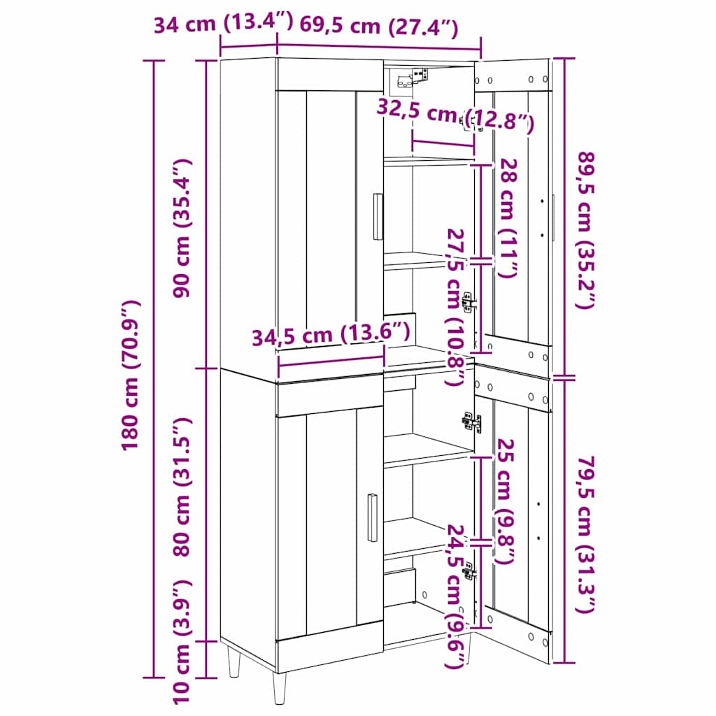 - Gesamtabmessungen: 69,5 x 34 x 90 cm (L x B x H)