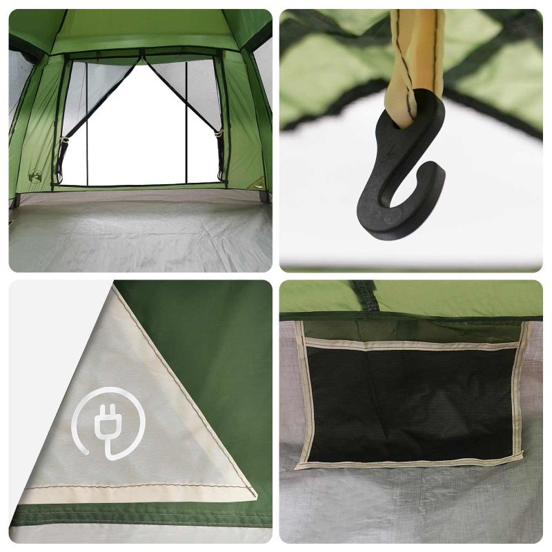 Dieses Instant Zelt ist eine tolle Lösung für alle, die beim Campen Komfort und Bequemlichkeit möchten. Es lässt sich schnell aufbauen und ist robust – perfekt für Abenteuer im Sommer. Mit Platz für drei Personen und einem coolen modernen Design passt es super zu unterschiedlichen Outdoor-Situationen. Das kompakte und tragbare Design macht es zu einer Top-Wahl für alle, die das Abenteuer lieben und zuverlässigen Schutz suchen. Wasserdichtes Polyester Material Aus 185T Polyester mit PU-Beschichtung, das euch auch bei einem Regenschauer trocken hält. Und: es ist UV-beständig, damit ihr auch bei strahlendem Sonnenschein geschützt seid. Umfassendes Komponentenpaket Kommt mit vorinstallierten Stangen, einer abnehmbaren Regenplane für besseren Schutz, sechs Abspannleinen für Stabilität und einer Tragetasche für easy Transport. Die 10 mitgelieferten Heringe sorgen dafür, dass das Zelt selbst bei windigem Wetter bleibt, wo es sein soll. Intelligente Designmerkmale Mit zwei Reißverschlusstüren für leichten Zugang und Belüftung, leicht erreichbaren Netzfüchern für eure Sachen. Der praktische E-Port sorgt für Stromzugang und das Schnellverschlusssystem ermöglicht ruckzuckes Aufbauen und Abbauen. Praktische Anwendungen Ideal für Sommer-Camping, Rucksackreisen, Festivals oder einfach mal fürs Wochenende. Durch die speziellen Eigenschaften ist es super geeignet für all die, die in der Natur zuverlässigen Schutz suchen. Einfache Pflegehinweise Ein feuchtes Tuch reicht, um das Zelt sauber zu halten, und sorgt dafür, dass es auch nach dem Campingtrip gut aussieht. Ihr braucht keine starken Reinigungsmittel; ein einfaches Abwischen reicht aus.