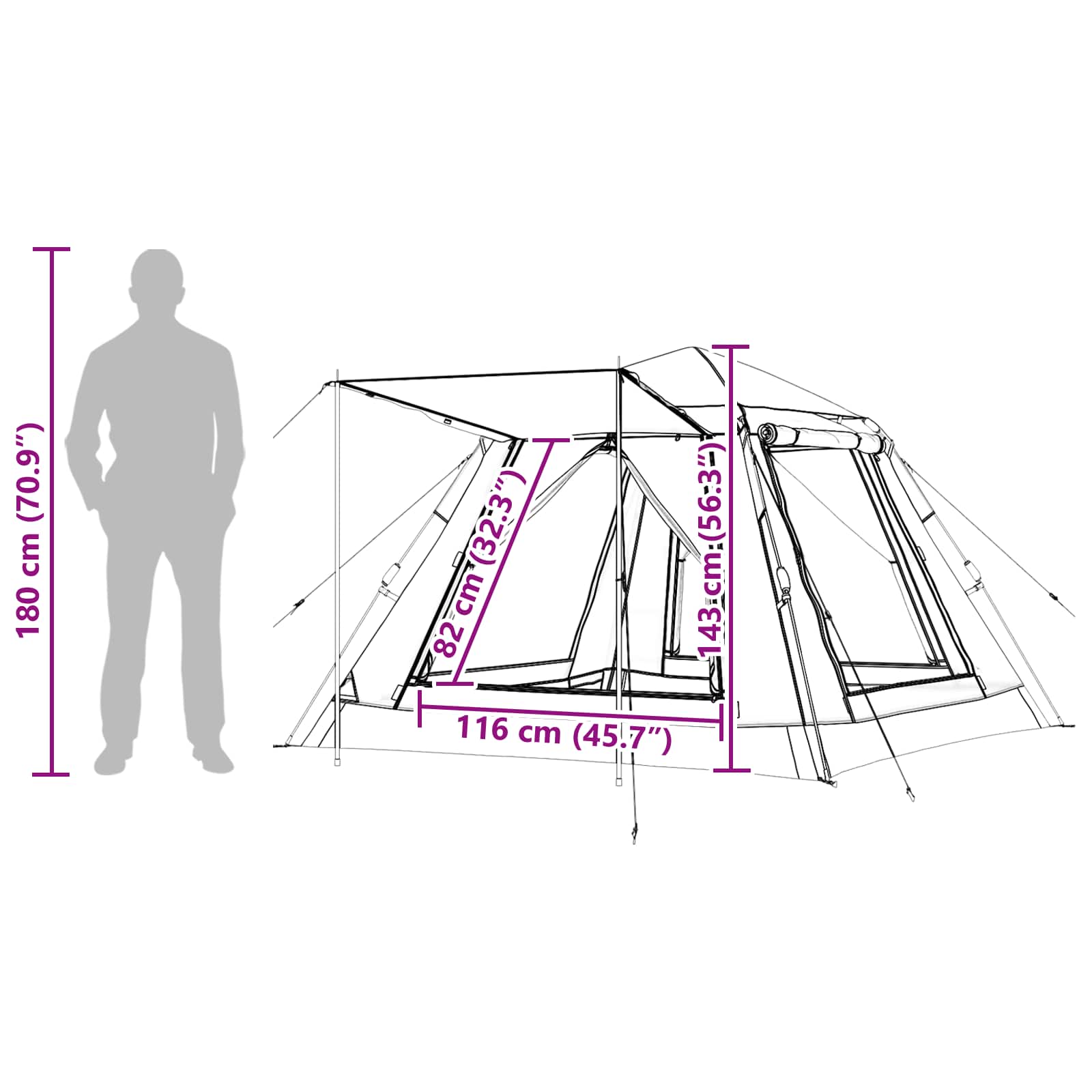 - 1 x Zelt mit vorinstallierten Stangen