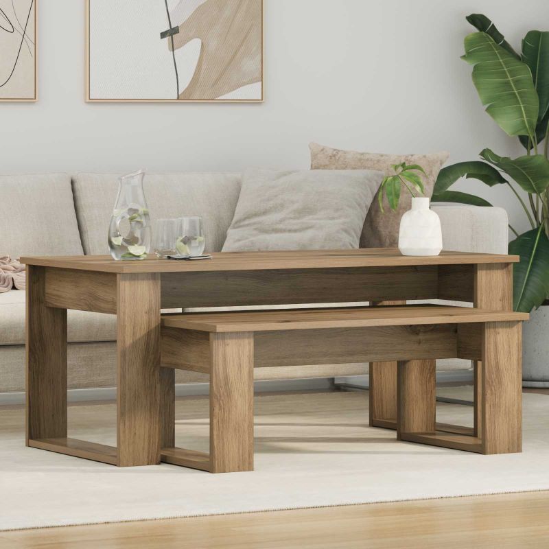 Das moderne Couchtisch-Set bringt einen Hauch von Eleganz und Funktionalität in dein Wohnzimmer. Es ist toll für Dekoration, Getränke und Lesematerial. Die rechteckige Form hat eine ausgewogene Anziehungskraft und passt perfekt zu vielen Möbeln und Styles. Material aus Holzwerkstoff: Dieses Couchtisch-Set ist aus robustem Holzwerkstoff gefertigt und für Langlebigkeit sowie einen modernen Look konzipiert. Das Material wurde wegen seiner Festigkeit gewählt und passt in jedes Zuhause – ganz unkompliziert! Bequeme Montage: Dank der einfachen Anleitungen ist der Aufbau dieses Tischsets ein Kinderspiel. Alle Teile sind dabei, und man braucht nur zwei Personen und einen Schraubendreher, damit alles schnell und einfach geht. Vielseitiger Stil: Das coole Design passt super in jedes Wohnzimmer. Es bietet eine praktische Oberfläche für Alltagsgegenstände und sieht dabei auch noch schick aus – ein echter Hingucker! Nur für drinnen: Dieses Tischset ist nur für den Innenbereich gedacht und perfekt für Wohnzimmer oder Lounges. Es bringt Stil und Funktionalität in deine Räume, ohne die Materialqualität zu beeinträchtigen. Pflegehinweise: Um das schöne Aussehen des Tisches zu erhalten, sollten scharfe Chemikalien und raue Materialien vermieden werden. Einfaches Abstauben und leichtes Wischen hält die Oberfläche frisch und sorgt dafür, dass der Tisch lange schön bleibt.