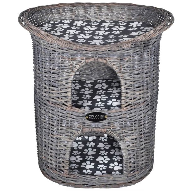 Dieser Katzenturm mit 2 Etagen besteht aus Weide und bietet deinem Haustier nicht nur einen bequemen Platz zum Schlafen und Entspannen, sondern passt auch mit seinem klassischen Weidengeflecht-Design zu jedem Interieur. Es ist ein tolles Geschenk für deinen vierbeinigen Liebling oder für einen Tierfreund! Dieses extravagante Katzenhaus ist aufwendig geflochten und weist ein stilvolles Turm-Design mit zwei Etagen auf. Die untere Etage ist eine Kuschelhöhle mit einem "Fenster" zum Verstecken und Beobachten der Umgebung. Die obere Etage ist eine Liegefläche, die Platz zum Entspannen und Schlafen bietet. Beide Etagen sind mit bequemen Kissen ausgestattet. Aus Weide gefertigt, ist die Kuschelhöhle robust und dennoch leicht genug zum Mitnehmen. Das Haustierhaus mit 2 Etagen kann auch draußen im Garten oder auf der Terrasse verwendet werden, um deiner Katze, deinem Kätzchen, deinem Hund oder deinem Welpe einen gemütlichen Platz zum Schlafen, Entspannen oder Spielen zu bieten. So kann dein Haustier die Sonne genießen, während es sich auf der oberen Liegefläche entspannt!