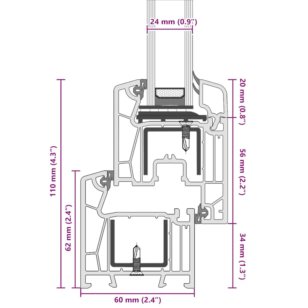 - Verglasung: Das Fenster verfügt über eine 2-fach-Isolierverglasung mit Argon-24 mm (4-16AR-4i) - Ug=1,1 W/(m²·K)