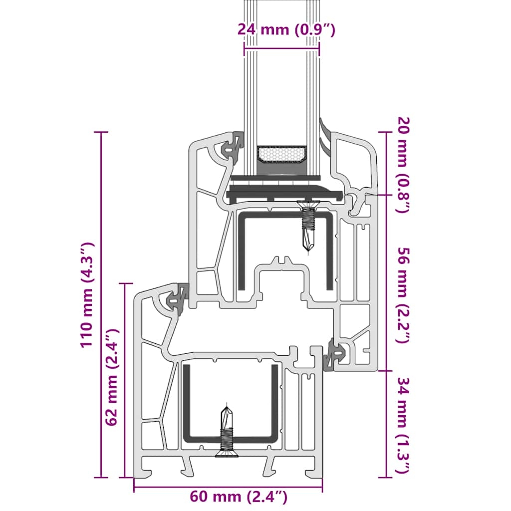 - Verglasung: Das Fenster verfügt über eine 2-fach-Isolierverglasung mit Argon-24 mm (4-16AR-4i) - Ug=1,1 W/(m²·K)