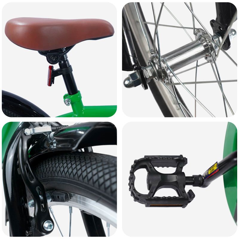 Das moderne Kinderfahrrad bietet einen genialen Mix aus Haltbarkeit und Stil und ist damit die perfekte Wahl für kleine Entdecker. Es hat ein klassisches Design, das Tradition und Funktionalität vereint, sodass die Kids zuverlässig und mit viel Spaß fahren können. Egal ob sie durch den Spielplatz sausen oder die Nachbarschaft erkunden – dieses Fahrrad sorgt durch sein schickes Aussehen und die stabilen Materialien für ein tolles Fahrerlebnis. Robuster Stahlrahmen: Bietet die nötige Stabilität für sicheres Radfahren. Das stabile Material sorgt für enorme Widerstandsfähigkeit, perfekt für Abenteuer draußen. Es garantiert langanhaltende Nutzung und gleichbleibende Leistung, damit die Kids sicher unterwegs sind. Anpassbare Komponenten: Mit verstellbaren Lenkern und einem höhenverstellbaren Sitz passt sich das Fahrrad super an wachsende Kinder an. So wird das Fahren angenehm und bequem, um Druck zu mindern und den Spaß zu maximieren. Egal ob beim Lernen oder beim Rennen, das Fahrrad bleibt ein treuer Begleiter. Einfache Ein-Gang-Bedienung: Mit einem einzigen Kettenrad ist das Fahren total easy. Diese Funktion macht die Gangschaltung für die Kids unkompliziert, stärkt ihr Vertrauen und verringert die Wartung. Es ist ideal für gemütliche Fahrten im Park oder Garten, ohne sich mit Gängen ablenken zu müssen. Sicherheitsdesign: Ausgestattet mit einem klassischen Bremshebel-System, sorgt dieses Fahrrad für effektive Bremskraft, was für Sicherheit wichtig ist. Das durchdachte Design ermöglicht es den Kindern, sicher zu bremsen und die Kontrolle beim Fahren zu behalten. Zusammen mit den Stahlfelgen bleibt die Haftung auch bei plötzlichen Stopps oder Nässe zuverlässig. Einfache Wartung und Pflege: Durch das clevere Design und die stabilen Materialien ist die Pflege dieses Fahrrads ein Kinderspiel. Bewahr es an einem kühlen, trockenen Ort für optimale Haltbarkeit auf und schau regelmäßig die Schrauben und Verbindungen nach, damit alles reibungslos funktioniert. So bleibt das Fahrrad in Topform für das nächste Abenteuer.