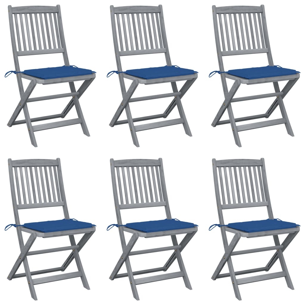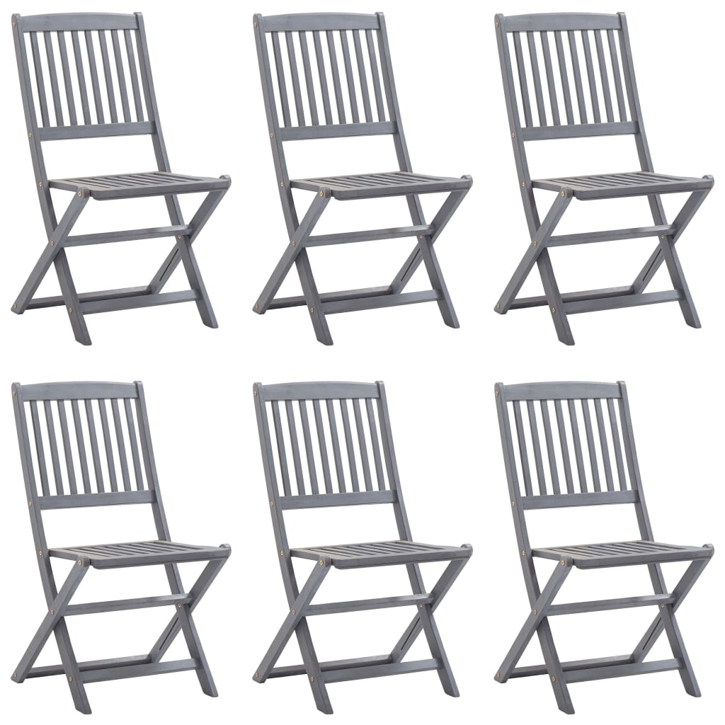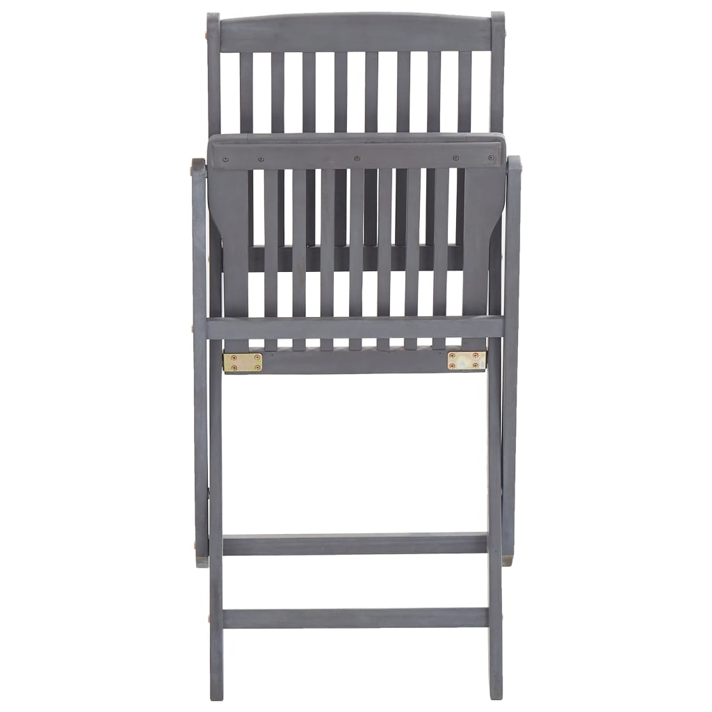 Dieses moderne Set aus Holz-Gartenstühlen mit Sitzpolstern verleiht Ihrem Garten, Ihrer Terrasse oder Ihrem Hof einen Hauch von natürlichem Stil und ist außerdem eine ausgezeichnete Wahl für Mahlzeiten im Freien. Diese Essstühle bestehen aus massivem Akazienholz, einem tropischen Hartholz, was die Stühle witterungsbeständig macht und eine jahrelange Lebensdauer gewährleistet, da massives Akazienholz sowohl belastbar als auch verschleißfest ist. Die grau lasierte Oberfläche ist ganz einfach mit einem feuchten Tuch zu reinigen. Bei Nichtgebrauch lassen sich die Stühle platzsparend zusammenklappen. Darüber hinaus bieten die mitgelieferten Sitzkissen zusätzlichen Komfort beim Entspannen oder Speisen. Zur sicheren Befestigung am Stuhl ist jedes Sitzpolster mit je zwei Bindebändern an zwei Ecken versehen.
