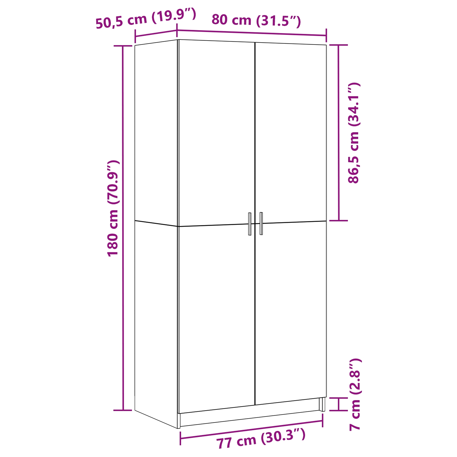 - Maße: 80 x 50,5 x 180 cm (L x B x H)
