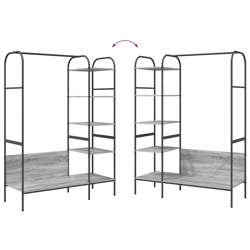 Dieser Kleiderständer hat eine stylische grau sonoma Oberfläche und wertet jeden Raum auf. Sein industrieller Look und die glatte Oberfläche machen ihn zur perfekten Lösung, um Kleidung ordentlich zu halten und gleichzeitig Platz zu sparen. Ideal für Leute, die ihren Wohnraum aufgeräumt haben wollen. Stylisches Design: Die grau sonoma Oberfläche bringt modernen Flair und macht deine Kleiderpräsentation stylish. Viel Stauraum: Fünf geräumige Regale bieten viel Platz für Kleidung und Accessoires. Haltbarkeit: Aus robusten, rost- und korrosionsbeständigen Materialien, die langlebig sind. Wandmontiert: Perfekt, um Platz auf dem Boden in deinem Schlafzimmer oder Kleiderschrank zu schaffen. Einfache Montage: Kommt mit allem, was du für den schnellen Aufbau brauchst.