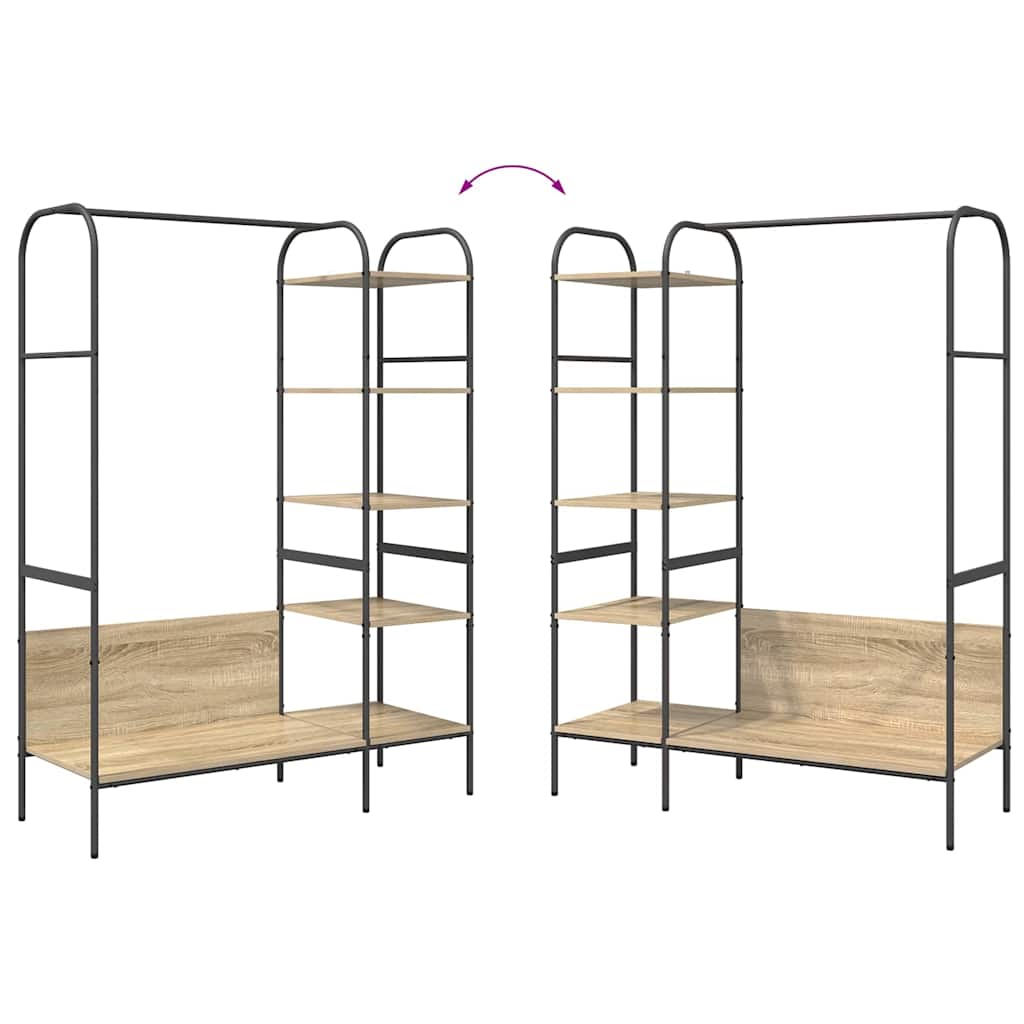 Dieser Kleiderständer mit Regalen hat eine schöne Sonoma Eichenoptik, perfekt für moderne und rustikale Umgebungen. Er verschönert jede Schlafzimmer- oder begehbare Schrankdekoration. Mit seinem stylischen Design und angenehmen Touch ist dieses Stück nicht nur schön, sondern auch eine praktische Aufbewahrungslösung, die es zur idealen Wahl für alle macht, die ihren Raum aufräumen wollen. Stylisches Design: Das elegante Sonoma Eichenfinish verleiht jedem Raum einen modernen Touch und ermöglicht stylische Präsentationen deiner Kleidung. Viel Stauraum: Mit fünf großzügigen Regalen bietet er viel Platz, um eine Vielzahl von Kleidungsstücken und Accessoires ordentlich zu arrangieren. Langlebigkeit: Robuste Konstruktion, die sicherstellt, dass dieser Ständer über Jahre stabil bleibt. Wandmontiert: Designt für wandmontierte Installation, perfekt, um den Boden in deinem Schlafzimmer oder Schrank optimal zu nutzen. Einfache Montage: Alle benötigten Materialien sind enthalten, was einen unkomplizierten Installationsprozess garantiert.