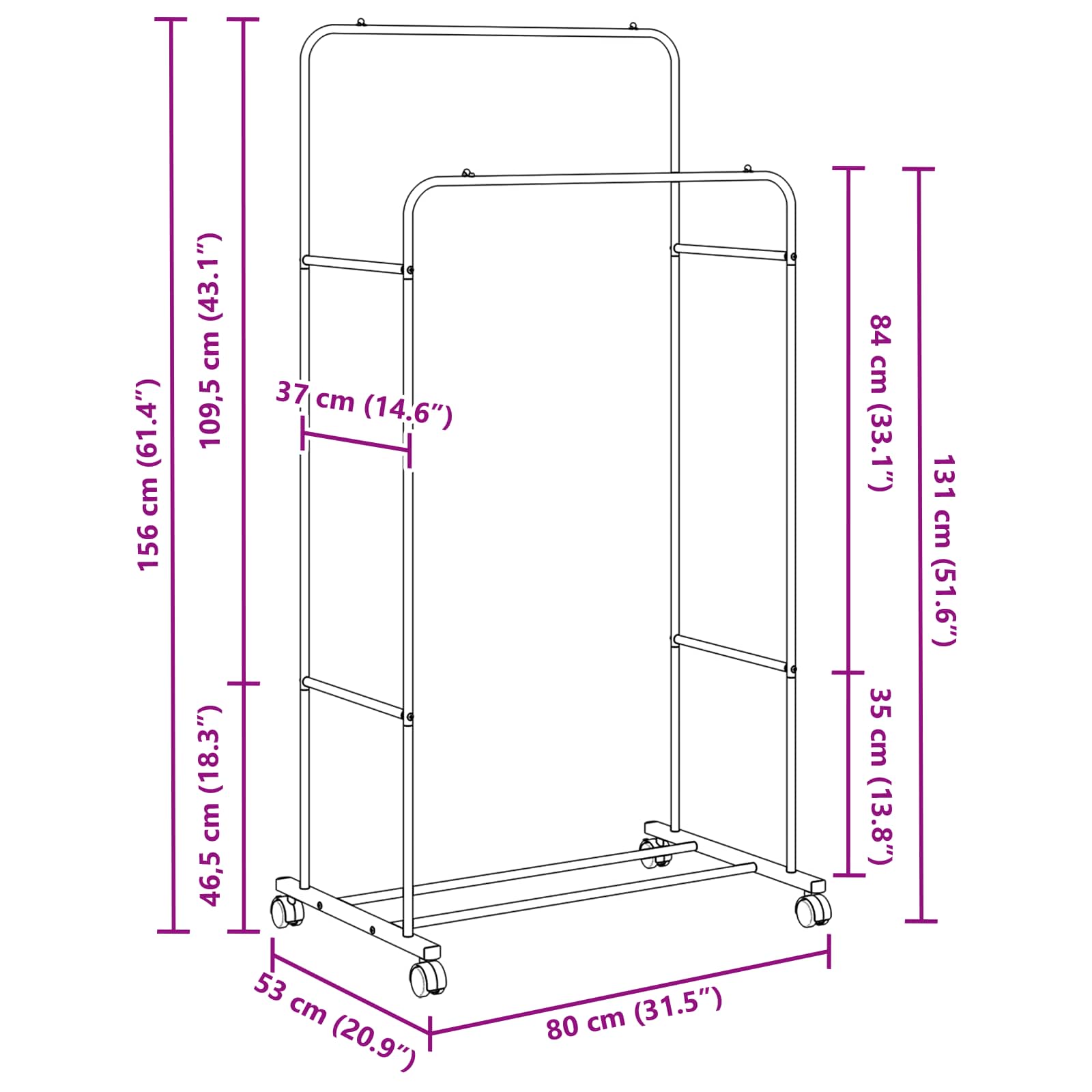 - Gesamtabmessungen: 80 x 53 x 156 cm (L x B x H)