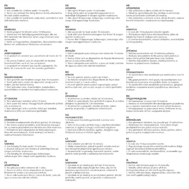 - Verwenden Sie nur Matratzen mit einer Mindestgröße von 90 x 190 cm und einer Maximalgröße von 155 x 190 cm