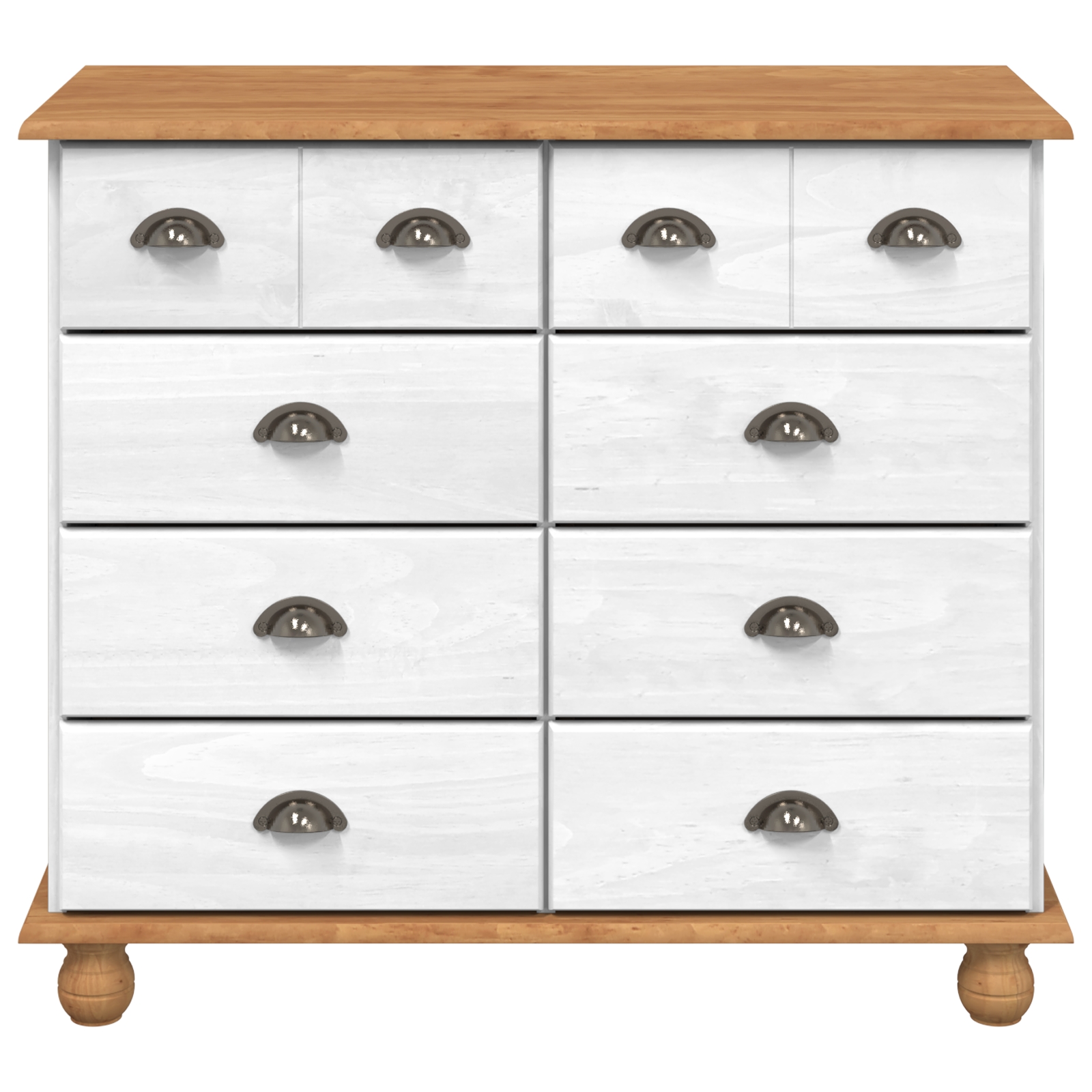 Diese Kommode verbindet klassischen Stil mit cleverem Stauraum und ist ein echtes Muss für jedes Schlafzimmer. Sie ist aus hochwertigem MDF und die neun geräumigen Schubladen bieten viel Platz für Klamotten, Accessoires und Kleinkram, während die stilvolle weiße Oberfläche und die Holzton-Oberfläche deinen Wohnbereich aufhellen. Viel Stauraum: Die Kommode hat neun Schubladen, die dir jede Menge Platz zum Organisieren deiner Sachen bieten. Jede Schublade kann eine Mischung aus Gegenständen aufnehmen, von Kleidung bis hin zu zufälligen Kleinigkeiten, damit dein Raum ordentlich bleibt. Stylisches Design: Mit ihrem traditionellen Look verleiht dieses Stück deinem Schlafzimmer einen schönen Akzent. Die schlichte weiße Oberfläche und die Holzplatte geben eine warme Ausstrahlung und verschönern deine Dekoration, während sie zugleich praktisch bleibt. Robuste Konstruktion: Aus MDF gefertigt, ist diese Kommode langlebig. Sie hält den täglichen Gebrauch aus und sieht dabei gut aus. Einfache Pflege: Ein trockenes Tuch ist alles, was du zum Reinigen benötigst, sodass es leicht ist, sie schick zu halten. Vielseitige Nutzung: Funktioniert gut in Schlafzimmern, Wohnzimmern oder Gästezimmern. Ihr Design passt zu verschiedenen Stilen und macht sie zur idealen Wahl für jedes Zuhause.