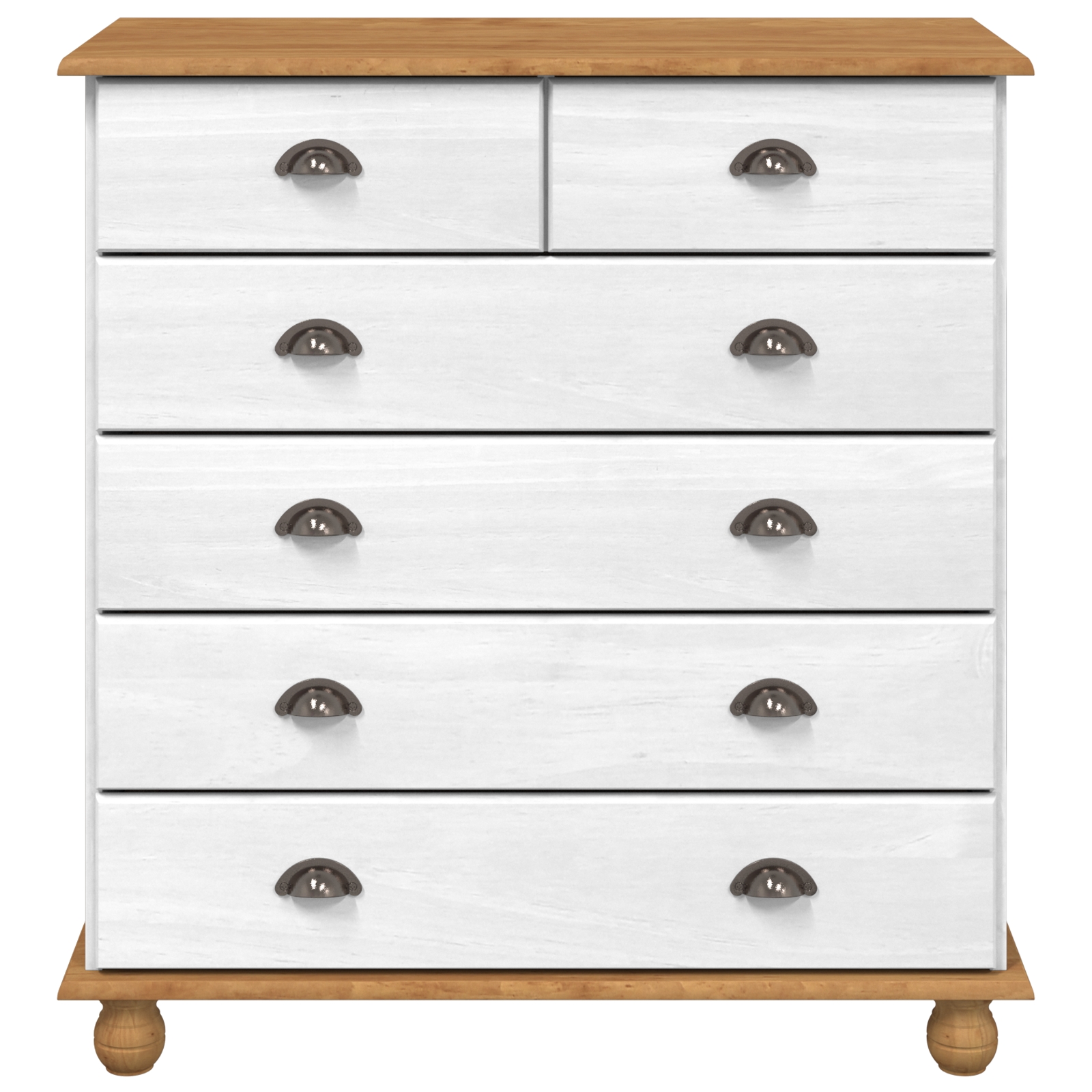 Diese moderne Kommode ist eine coole Stauraumlösung, um deinem Raum neuen Schwung zu geben. Ihr stilvolles Aussehen bringt Wärme und Funktionalität in jedes Schlafzimmer oder Wohnzimmer. Sie bietet viel Platz für Kleidung oder persönliche Dinge. 【Robuste Bauweise】 Die Kommode ist aus massivem Kiefernholz und MDF gemacht, was sie stabil und langlebig macht. Hochwertige Materialien sorgen für eine schicke Oberfläche, die zu vielen Inneneinrichtungsstilen passt und ein praktisches, stylisches Stauraumstück ergibt. 【Vielseitige Organisation】 Sechs praktische Schubladen mit leicht zu ziehenden Bechergriffen bieten viel Platz für diverse Dinge, damit deine Kommode deinen Raum ordentlich und aufgeräumt hält. Ideal für Kleidung, Bettwäsche oder Kleinigkeiten, erfüllt sie deine Stauraumbedürfnisse perfekt. 【Zeitgenössische Ästhetik】 Die polierte, matte Oberfläche gibt der Kommode einen eleganten Touch, was sie mühelos mit modernem oder traditionellem Design harmoniert. Ihre klaren Linien und glatte Textur machen sie zu einem Hingucker, der das Aussehen deines Raumes aufwertet. 【Einfache Montage】 Die Kommode ist so gestaltet, dass sie leicht aufzubauen ist und kommt mit klaren Anweisungen. Du brauchst nur einen Schraubendreher und einen Hammer, um sie zusammenzubauen, sodass jeder sie problemlos aufbauen kann. 【Platzsparende Größe】 Mit ihrem kompakten Design ist die Kommode 80 cm lang und 40 cm breit, sodass sie in verschiedene Raumlayouts passt, ohne zu viel Platz einzunehmen. Sie ist eine ausgezeichnete Wahl für kleine Räume und maximiert gleichzeitig die Funktionalität.