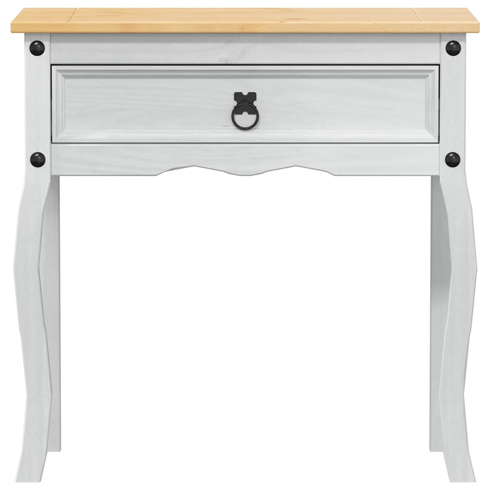 Dieser vielseitige Konsolentisch hat ein rustikales Design und ist ein Must-have für Wohnzimmer, Flure oder Schlafzimmer. Die stabile rechteckige Form passt zu jedem Raum und bietet eine klasse Mischung aus Stil und Funktionalität. Die natürliche, raue Schönheit und die matte Oberfläche bringen rustikalen Charme in jedes Umfeld und machen ihn zur stilvollen und praktischen Wahl für jede Wohnung. Der solide Kiefernholzbau sorgt dafür, dass der Tisch immer ein Blickfang bleibt. Langlebiges Massivholz Kiefer: Aus robustem, solidem Massivholz gefertigt, hält dieser Konsolentisch auch dem täglichen Gebrauch stand und bleibt dabei schick. Die natürliche Maserung des Holzes macht ihn nicht nur attraktiv, sondern auch robust und langlebig – ein treuer Begleiter in jedem Umfeld. Rustikaler natürlicher Stil: Mit seinem rustikalen Look bringt dieser Tisch sofort Wärme und Charme in dein Zuhause. Die schönen Maserungen und markanten Knoten schaffen eine einzigartige Ästhetik, die sowohl zu klassischen als auch zu modernen Einrichtungsstilen passt. Geräumige Tischoberfläche: Die großzügige Tischplatte bietet genug Platz für Deko, Getränke oder eine Lampe. Sie ist benutzerfreundlich und wertet jeden Wohnraum auf. Matte Oberfläche: Mit einer matten Oberfläche bietet dieser Tisch einen nicht-reflektierenden Look, der schick ist und Fingerabdrücke sowie leichte Kratzer minimiert. So sieht er täglich toll aus. Einfach zu pflegen: Halte den Tisch in Top-Zustand mit wenig Aufwand. Ein einfaches Abwischen mit einem feuchten Tuch reicht, um Staub und Schmutz zu entfernen. Dadurch bleibt der Stil erhalten ohne viel Pflegeaufwand.