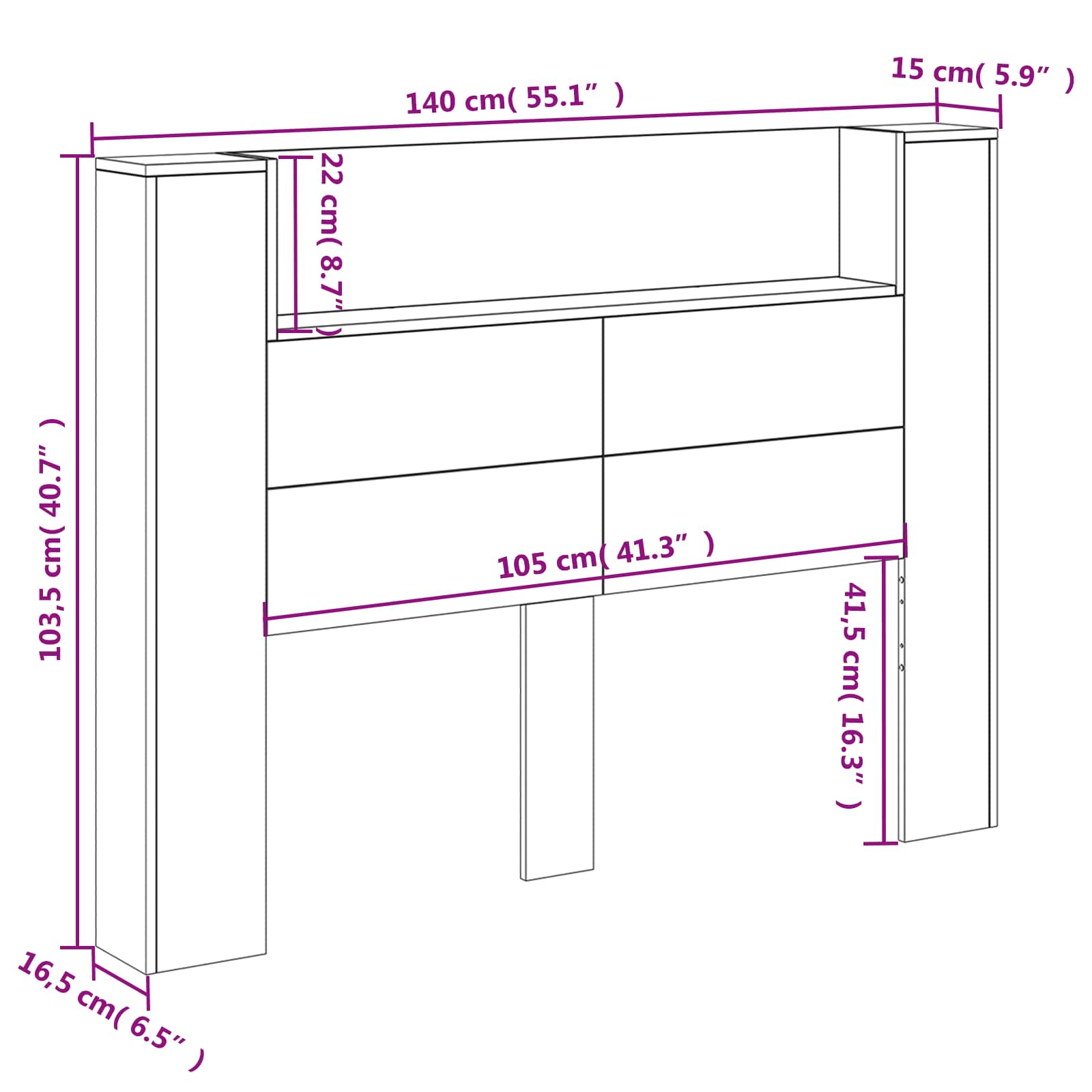 - Gesamtabmessungen: 140 x 16,5 x 103,5 cm (L x B x H)