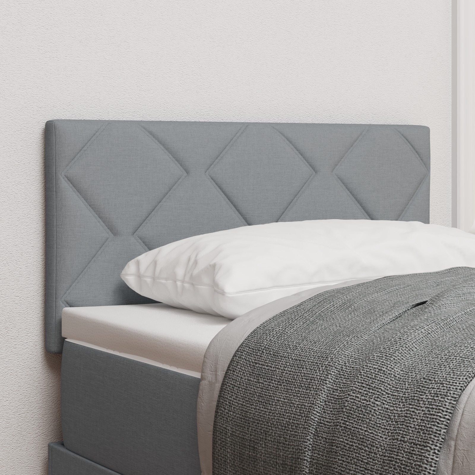 Dieses moderne niedrige Kopfteile in hellgrau gibt jedem Schlafzimmer einen stylischen Kick. Mit seinem schlichten und eleganten Design, hergestellt aus top Holz und weichem Stoff, bringt es ein schönes Upgrade für deinen Raum und bietet auch einen bequemen Platz zum Entspannen. Stylisher Look: Das moderne Design dieses Kopfteiles passt super zu verschiedenen Einrichtungsstilen und gibt deinem Schlafzimmer einen frischen Look. Robuste Bauweise: Hergestellt aus starkem Holz und hochwertigem Stoff, ist dieses Kopfteile auf Langlebigkeit und Stil ausgelegt. Platzsparend: Wandmontiert, bleibt alles ordentlich und der Platz wird optimal genutzt. Bequeme Polsterung: Der weiche Stoff sorgt für extra Komfort — ideal zum Entspannen, Lesen oder Fernsehen. Einfache Installation: Alles, was du für die Montage brauchst, ist dabei, damit du es schnell mit einfachem Werkzeug aufstellen kannst.