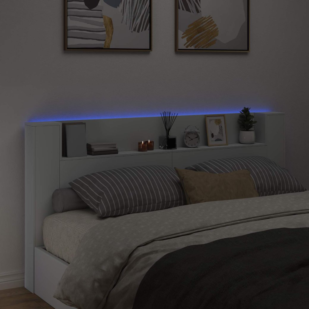 Dieses coole Kopfteil bringt Stil und Funktion in dein Schlafzimmer. Es hat klare Linien und einen cleanen Look, der jedes Zimmer aufpeppt. Der Holzwerkstoff ist stabil und bietet Platz für zusätzlichen Stauraum. Die LED-Leuchten sorgen für eine angenehme Stimmung und sind super, um nach einem langen Tag zu relaxen. Materialien: Aus hochwertigem Holzwerkstoff, der langlebig und zuverlässig ist. So bleibt dein Kopfteil auch bei täglichem Gebrauch schön. Es bietet stabile Unterstützung für eine perfekte Schlafzimmergestaltung. Inklusive Komponenten: Die eingebauten LED-Streifen sorgen für anpassbare Beleuchtung für verschiedene Stimmungen. Die mehrfarbigen Lichter schaffen eine tolle Atmosphäre, ideal zum Lesen oder Entspannen. Auch die USB-Stromquelle macht es einfach, elektronische Geräte anzuschließen. Features /Funktion /Design: Das Kopfteil hat praktische Stauraumlösungen, ideal für kleine Wohnungen. Die platzsparenden Fächer sorgen für Ordnung und tragen dazu bei, dass alles gut aussieht. Es ist perfekt für den modernen Lebensstil und sieht dabei immer gut aus. Empfohlene Verwendungen: Dieses Kopfteil verwandelt jedes Schlafzimmer in eine schicke, moderne Oase. Es passt super zu zeitgenössischen oder minimalistischen Inneneinrichtungen. Egal ob in einer WG oder einem Apartment, es fügt sich nahtlos in deinen Stil ein. Pflege & Wartung: Halte dein Kopfteil ganz easy in Schuss. Wisch einfach mit einem feuchten Tuch drüber, um Staub zu beseitigen – so bleibt es immer elegant. Regelmäßige Pflege sorgt dafür, dass es lange hübsch bleibt.