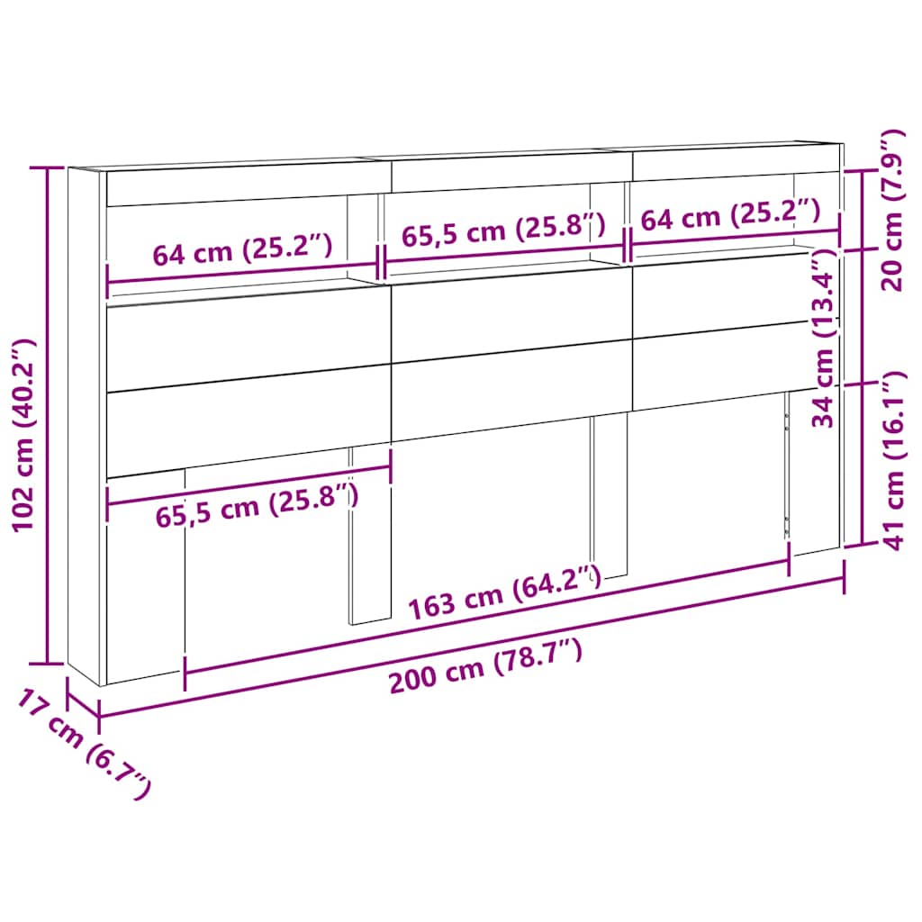 Kopfteil mit Regal Altholz 200 x 17 x 102 cm Holzwerkstoff