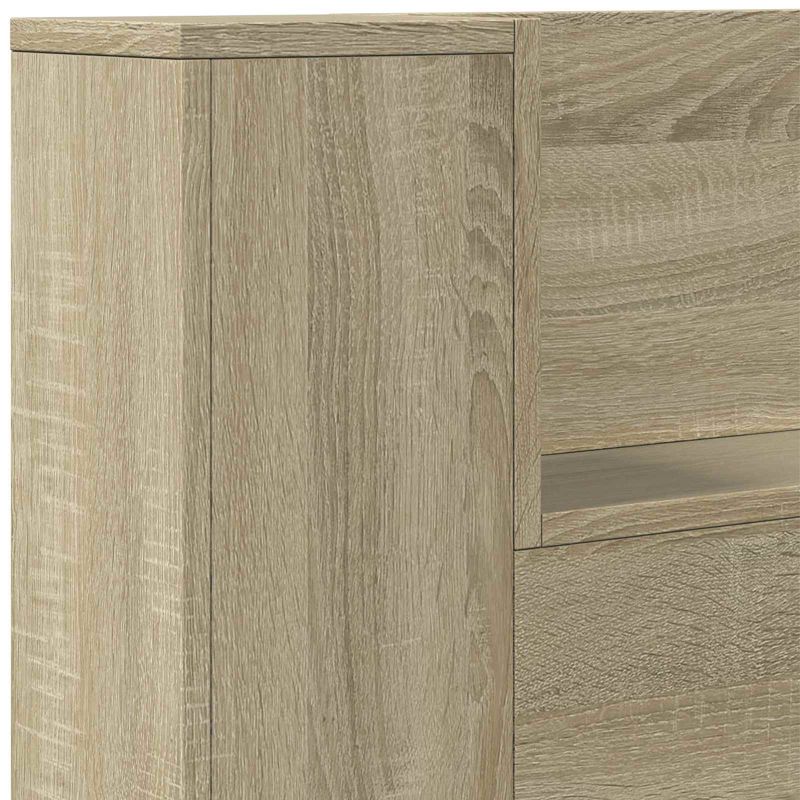 Dieser Kopfteil-Schrank mit LED ist perfekt, um jedes Schlafzimmer aufzuwerten. Er hat ein einfaches, modernes Design mit klaren Linien, das super zu zeitgenössischen und minimalistischen Wohnstilen passt. Das Kopfteil bringt nicht nur einen coolen Look, sondern bietet auch viel Stauraum mit seinen Holzwerkstoffregalen, die glatt und langlebig sind – perfekt für Deko, Bücher und andere Sachen. Das innovative Design lässt sich in viele Schlafzimmer integrieren und ist perfekt für Stellungsbewusste, die auf Ordnung und Stil setzen. Die RGB-LED-Beleuchtung sorgt für eine anpassbare Stimmung - ideal zum Lesen oder für eine gemütliche Atmosphäre. Dank der Fernbedienung kannst du ganz easy die Farbe und Helligkeit einstellen. Das wandmontierte Design ist platzsparend und sieht fast wie ein fest eingebautes Möbelstück aus, ideal für jede Raumgröße, und schafft die perfekte Balance zwischen Form und Funktion. Hochwertiger Holzwerkstoff: Dieser Kopfteil ist aus robustem Holzwerkstoff, der für Langlebigkeit sorgt. Die strukturierte und glatte Oberfläche bietet ein modernes Finish, das leicht zu reinigen ist und jeden Abnutzungserscheinungen trotzt. Praktische Stauraumlösungen: Mit schlanken Regalen wird der Raum ordentlich und bietet Platz für Bücher, Deko oder Schlafzeug. Ideal für jeden Raum! Innovatives Lichtdesign: Mit einem LED-Streifen ausgestattet, kannst Du die RGB-Beleuchtung per Fernbedienung anpassen und so die richtige Stimmung für jeden Anlass schaffen! Wandmontage: Durch das wandmontierte Design wird Platz auf dem Boden gespart und verleiht jedem Schlafzimmer einen luftigen Look. Ideal für moderne Wohnungen mit Platzmangel. Einfache Pflege: Die Pflege ist locker! Ein einfaches Abwischen mit einem trockenen Tuch hält die Oberfläche in Schuss und verlängert die Lebensdauer, sodass sie immer gut aussieht.