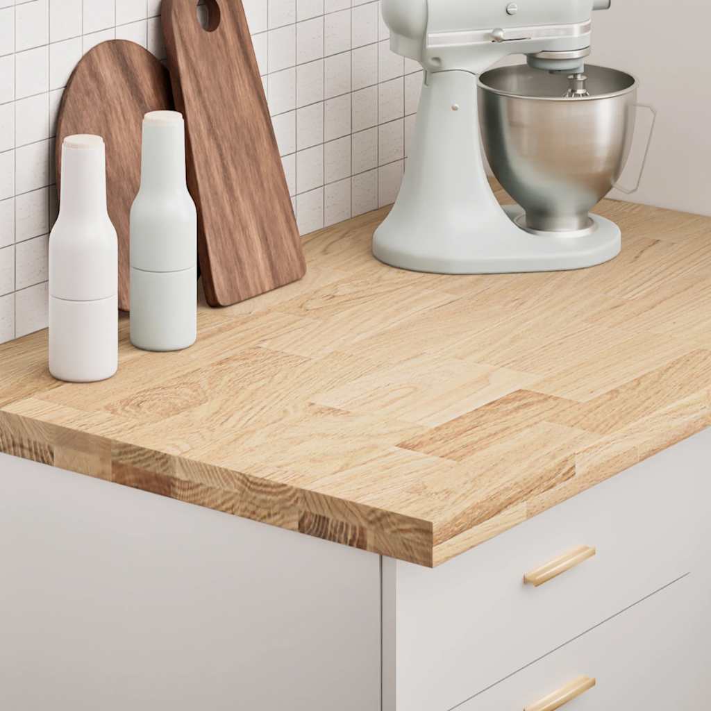 Verbessere deine Küche mit dieser Küchenarbeitsplatte aus Holz für einen Hauch von rustikalem Charme! Robustes und stabiles Material: Massives Eichenholz ist für seine Festigkeit, Haltbarkeit und schöne Maserung bekannt, weshalb es sich hervorragend für die Herstellung von langlebigen Möbeln eignet. Durch ihre natürliche Beständigkeit gegen Insektenbefall und Schimmelbildung sehen Eichenmöbel selbst nach jahrelangem Gebrauch brandneu aus.Vielseitig einsetzbar: Diese multifunktionale Arbeitsplatte kann mit verschiedenen Untergestellen für unterschiedliche Zwecke kombiniert werden, z. B. als Küchenarbeitsplatz, Werkbank in der Garage, Schreibtischplatte oder Waschtischplatte im Badezimmer.Pflegeleicht: Dank ihrer glatten Oberfläche lässt sich die Arbeitsplatte mit einem feuchten Tuch leicht reinigen. Gut zu wissen:Jedes Stück ist ein Unikat, das in Farbe und Maserung variiert. Die Lieferung erfolgt in zufälliger Reihenfolge, wodurch die Exklusivität und Individualität deines Produkts gewährleistet wird.Wir empfehlen, die Küchenarbeitsplatte vor der Verwendung mit einem Öl zu behandeln, um ihre Lebensdauer zu verlängern.