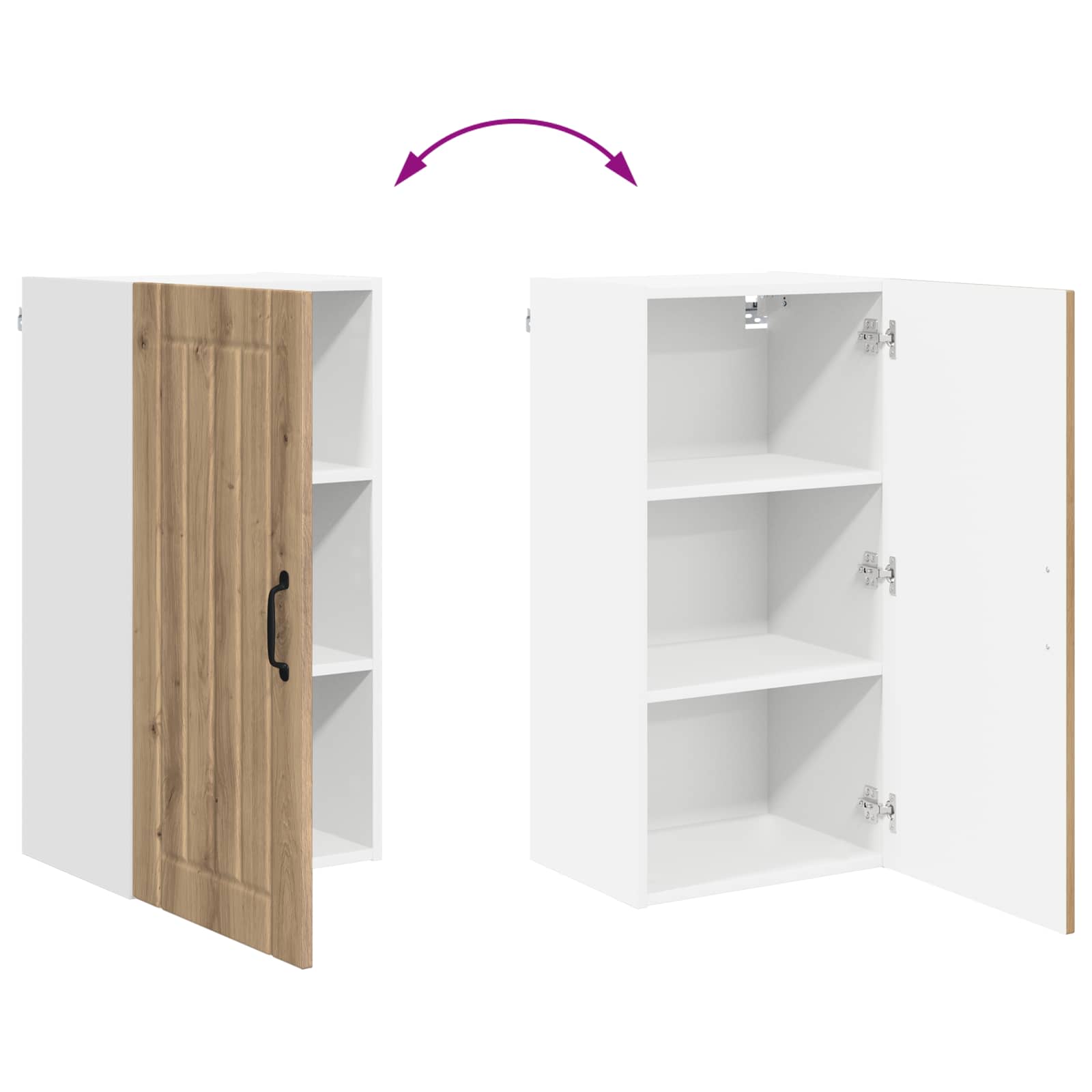 Der Holz-Küchenwandschrank verbindet modernes Design mit praktischen Funktionen und bringt frischen Wind in deine Küche. Er sorgt für mehr Ordnung und sieht dabei auch noch richtig gut aus, mit klaren Linien und ganz ohne Schnickschnack. Perfekt zum Organisieren und Aufbewahren aller möglichen Küchenutensilien. Material: Hergestellt aus hochwertigem Holzwerkstoff, ist dieser Schrank eine schicke und robuste Lösung für deine Küche. Dank der Langlebigkeit des Materials kannst du ihn lange nutzen, und er erfordert wenig Pflege. Ideal für alle, die Wert auf Aussehen und Haltbarkeit legen. Regal-Design: Mit praktischen Brettern, die dir helfen, Geschirr, Gewürze und anderes gut zu sortieren. Dank der klaren Struktur vermeidest du Unordnung und hast alles sofort griffbereit. Tür mit Scharnieren: Die eleganten Türen passen zum modernen Look des Schranks und sind zusätzlich praktisch. Sie öffnen sich leicht und die schwarzen Stangengriffe setzen einen tollen Akzent. Wandhalterung: Der wandmontierte Design nutzt den vertikalen Raum optimal und hält deine Arbeitsflächen frei. So bleibt die Küche ordentlich und aufgeräumt. Pflegehinweise: Die Pflege ist kinderleicht; einfach mal mit einem feuchten Tuch drüber wischen, um Staub und Schmutz zu entfernen. Keine scharfen Chemikalien nötig, also geht das schnell und unkompliziert. Regelmäßige Pflege sorgt dafür, dass er immer gut aussieht.