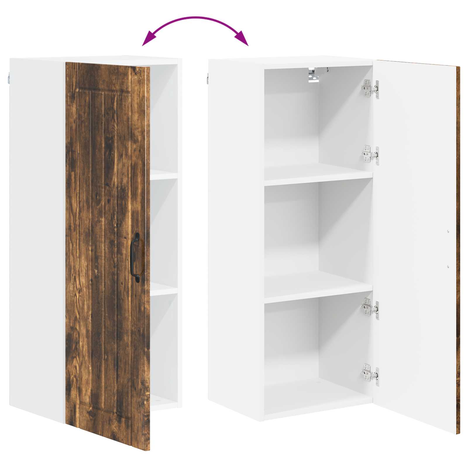 Der Holz-Küchenwandschrank verbindet modernes Design mit praktischen Funktionen und bringt frischen Wind in deine Küche. Er sorgt für mehr Ordnung und sieht dabei auch noch richtig gut aus, mit klaren Linien und ganz ohne Schnickschnack. Perfekt zum Organisieren und Aufbewahren aller möglichen Küchenutensilien. Material: Hergestellt aus hochwertigem Holzwerkstoff, ist dieser Schrank eine schicke und robuste Lösung für deine Küche. Dank der Langlebigkeit des Materials kannst du ihn lange nutzen, und er erfordert wenig Pflege. Ideal für alle, die Wert auf Aussehen und Haltbarkeit legen. Regal-Design: Mit praktischen Brettern, die dir helfen, Geschirr, Gewürze und anderes gut zu sortieren. Dank der klaren Struktur vermeidest du Unordnung und hast alles sofort griffbereit. Tür mit Scharnieren: Die eleganten Türen passen zum modernen Look des Schranks und sind zusätzlich praktisch. Sie öffnen sich leicht und die schwarzen Stangengriffe setzen einen tollen Akzent. Wandhalterung: Der wandmontierte Design nutzt den vertikalen Raum optimal und hält deine Arbeitsflächen frei. So bleibt die Küche ordentlich und aufgeräumt. Pflegehinweise: Die Pflege ist kinderleicht; einfach mal mit einem feuchten Tuch drüber wischen, um Staub und Schmutz zu entfernen. Keine scharfen Chemikalien nötig, also geht das schnell und unkompliziert. Regelmäßige Pflege sorgt dafür, dass er immer gut aussieht.