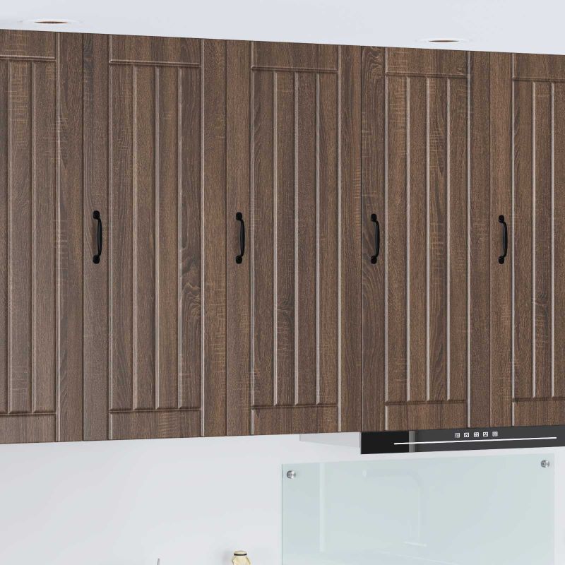 Der Holz-Küchenwandschrank verbindet modernes Design mit praktischen Funktionen und bringt frischen Wind in deine Küche. Er sorgt für mehr Ordnung und sieht dabei auch noch richtig gut aus, mit klaren Linien und ganz ohne Schnickschnack. Perfekt zum Organisieren und Aufbewahren aller möglichen Küchenutensilien. Material: Hergestellt aus hochwertigem Holzwerkstoff, ist dieser Schrank eine schicke und robuste Lösung für deine Küche. Dank der Langlebigkeit des Materials kannst du ihn lange nutzen, und er erfordert wenig Pflege. Ideal für alle, die Wert auf Aussehen und Haltbarkeit legen. Regal-Design: Mit praktischen Brettern, die dir helfen, Geschirr, Gewürze und anderes gut zu sortieren. Dank der klaren Struktur vermeidest du Unordnung und hast alles sofort griffbereit. Tür mit Scharnieren: Die eleganten Türen passen zum modernen Look des Schranks und sind zusätzlich praktisch. Sie öffnen sich leicht und die schwarzen Stangengriffe setzen einen tollen Akzent. Wandhalterung: Der wandmontierte Design nutzt den vertikalen Raum optimal und hält deine Arbeitsflächen frei. So bleibt die Küche ordentlich und aufgeräumt. Pflegehinweise: Die Pflege ist kinderleicht; einfach mal mit einem feuchten Tuch drüber wischen, um Staub und Schmutz zu entfernen. Keine scharfen Chemikalien nötig, also geht das schnell und unkompliziert. Regelmäßige Pflege sorgt dafür, dass er immer gut aussieht.