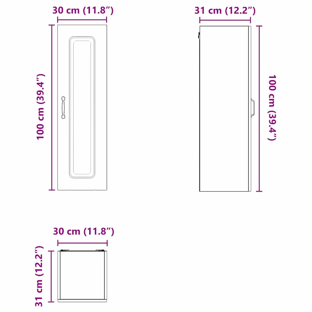 - Gesamtabmessungen: 30 x 31 x 100 cm (B x T x H)