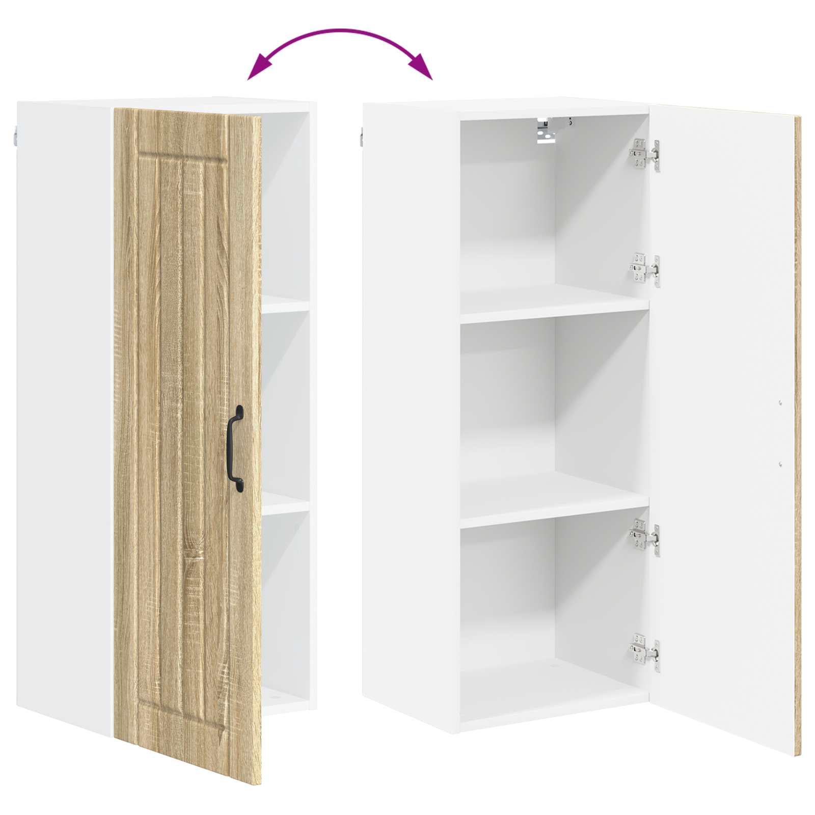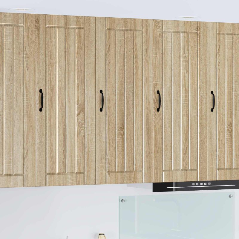 Der Holz-Küchenwandschrank verbindet modernes Design mit praktischen Funktionen und bringt frischen Wind in deine Küche. Er sorgt für mehr Ordnung und sieht dabei auch noch richtig gut aus, mit klaren Linien und ganz ohne Schnickschnack. Perfekt zum Organisieren und Aufbewahren aller möglichen Küchenutensilien. Material: Hergestellt aus hochwertigem Holzwerkstoff, ist dieser Schrank eine schicke und robuste Lösung für deine Küche. Dank der Langlebigkeit des Materials kannst du ihn lange nutzen, und er erfordert wenig Pflege. Ideal für alle, die Wert auf Aussehen und Haltbarkeit legen. Regal-Design: Mit praktischen Brettern, die dir helfen, Geschirr, Gewürze und anderes gut zu sortieren. Dank der klaren Struktur vermeidest du Unordnung und hast alles sofort griffbereit. Tür mit Scharnieren: Die eleganten Türen passen zum modernen Look des Schranks und sind zusätzlich praktisch. Sie öffnen sich leicht und die schwarzen Stangengriffe setzen einen tollen Akzent. Wandhalterung: Der wandmontierte Design nutzt den vertikalen Raum optimal und hält deine Arbeitsflächen frei. So bleibt die Küche ordentlich und aufgeräumt. Pflegehinweise: Die Pflege ist kinderleicht; einfach mal mit einem feuchten Tuch drüber wischen, um Staub und Schmutz zu entfernen. Keine scharfen Chemikalien nötig, also geht das schnell und unkompliziert. Regelmäßige Pflege sorgt dafür, dass er immer gut aussieht.