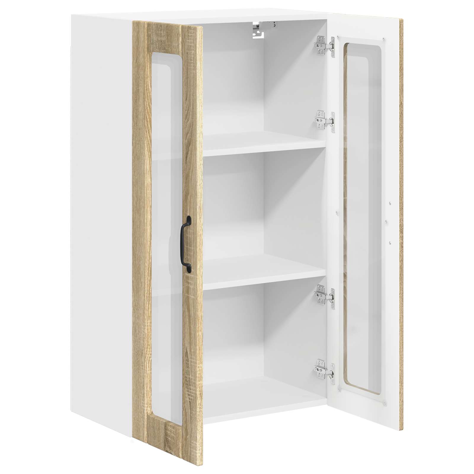 Der Holz-Küchenwandschrank verbindet modernes Design mit praktischen Funktionen und bringt frischen Wind in deine Küche. Er sorgt für mehr Ordnung und sieht dabei auch noch richtig gut aus, mit klaren Linien und ganz ohne Schnickschnack. Perfekt zum Organisieren und Aufbewahren aller möglichen Küchenutensilien. Material: Hergestellt aus hochwertigem Holzwerkstoff, ist dieser Schrank eine schicke und robuste Lösung für deine Küche. Dank der Langlebigkeit des Materials kannst du ihn lange nutzen, und er erfordert wenig Pflege. Ideal für alle, die Wert auf Aussehen und Haltbarkeit legen. Regal-Design: Mit praktischen Brettern, die dir helfen, Geschirr, Gewürze und anderes gut zu sortieren. Dank der klaren Struktur vermeidest du Unordnung und hast alles sofort griffbereit. Tür mit Scharnieren: Die eleganten Türen passen zum modernen Look des Schranks und sind zusätzlich praktisch. Sie öffnen sich leicht und die schwarzen Stangengriffe setzen einen tollen Akzent. Wandhalterung: Der wandmontierte Design nutzt den vertikalen Raum optimal und hält deine Arbeitsflächen frei. So bleibt die Küche ordentlich und aufgeräumt. Pflegehinweise: Die Pflege ist kinderleicht; einfach mal mit einem feuchten Tuch drüber wischen, um Staub und Schmutz zu entfernen. Keine scharfen Chemikalien nötig, also geht das schnell und unkompliziert. Regelmäßige Pflege sorgt dafür, dass er immer gut aussieht.